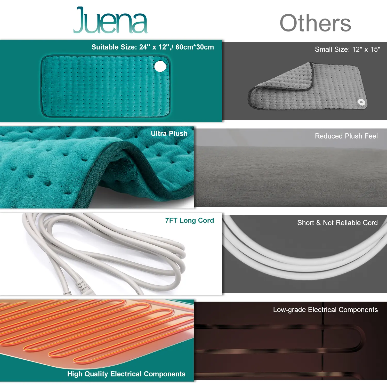 Our heating pad features ultra-fine velvet on both sides, offering a skin-friendly feel. Denser and thicker than others products, the plush surface provides superior warmth and more wrinkle-free, delivering a soft and cozy touch! It's the perfect gift for relaxing your body and mind!