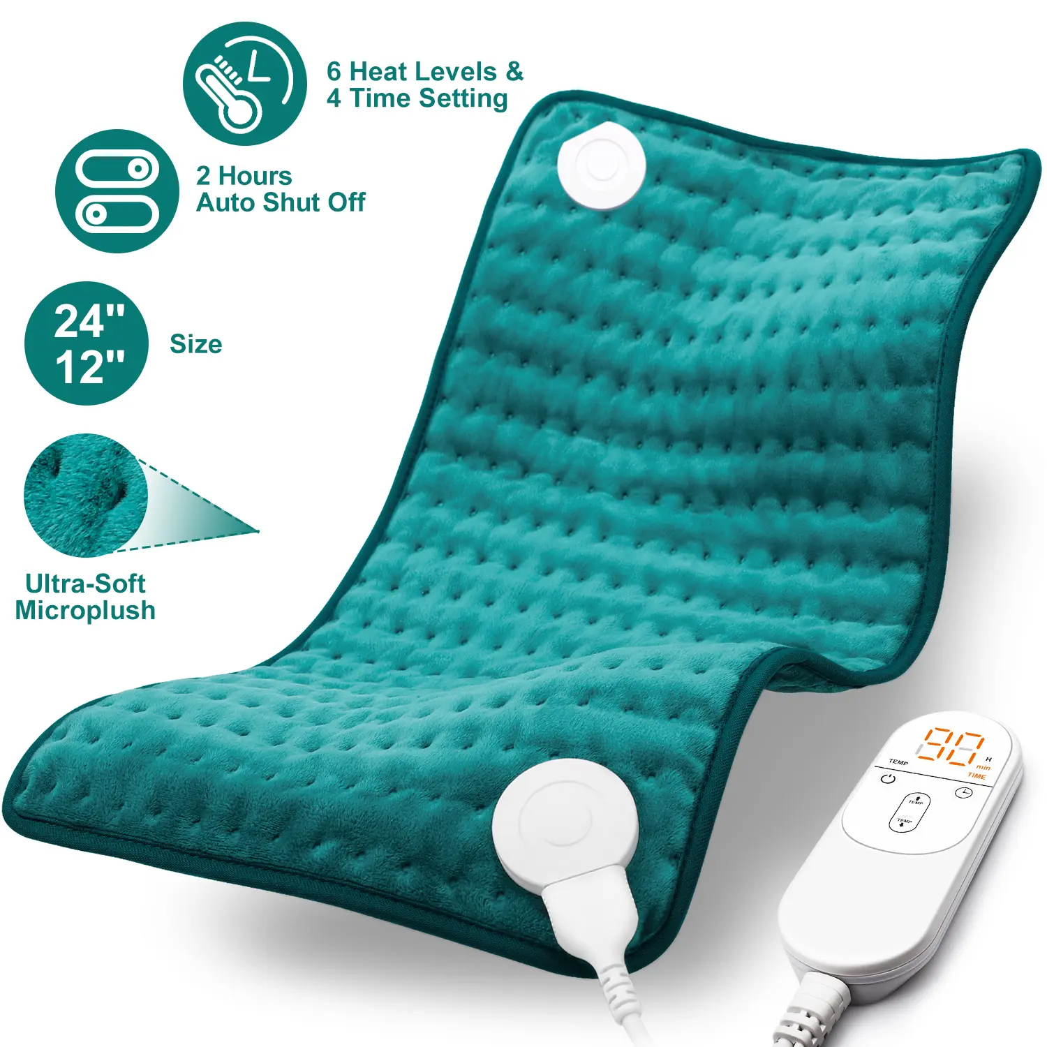 LED Multifunctional Controller: You can choose between 1-6 temperature levels (104°F~140°F) and 4 timer levels (30~120 minutes). The large digital display and backlight design of the controller make your operation more intuitive and clear. After two hours of use, the heat pad will automatically turn off to protect your safety.