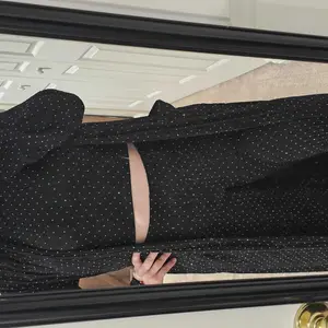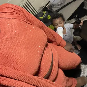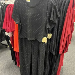 Gems are missing throughout the outfit. It’s very unflattering. Looks like a pijama. Maybe I need a smaller size cause it drags unless you wear heels if you are short. I’m 4’11 like the girl that’s always posting. She has a perfect body so everything looks amazing on her. I’m thick and short