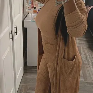 I absolutely am in LOVE with this! The comfort, quality, and style all in one! 🥰 hands down highly recommend. Fits true to size with stretch!! I’ve received so many compliments just wearing the jacket out 🤭🥰