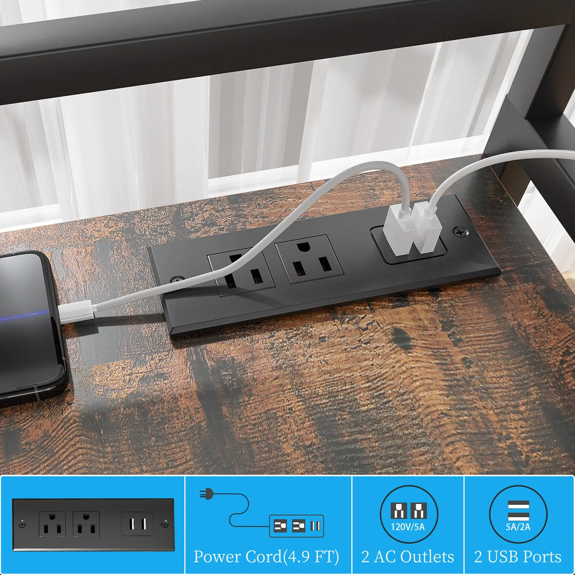 【Built-in Power Outlets】This sturdy table for 3d printer includes an embedded power strip with 2 built-in AC power outlets and 2 USB ports to keep devices charged and powered, Integrated to use. The 55inch power cord ensures flexibility in placement.