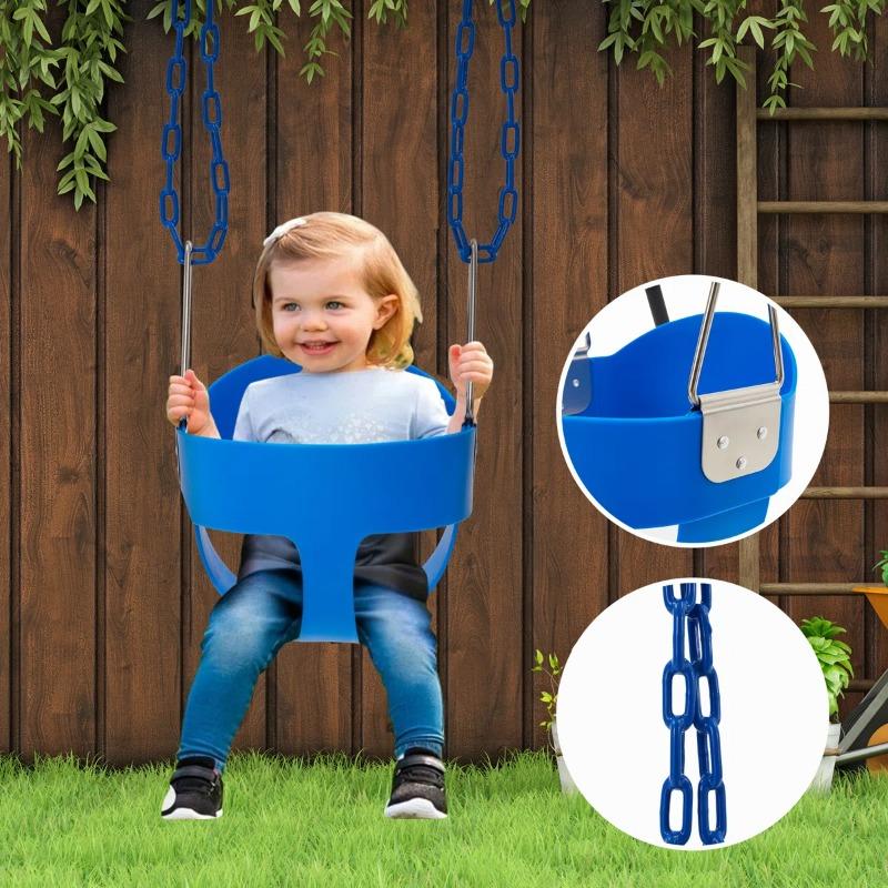 The height of the swing set outdoor for kids is adjustable, making it suitable for children of different ages. Suitable for children aged 6 months to 13 years, this feature ensures that your child can grow with the swing set.