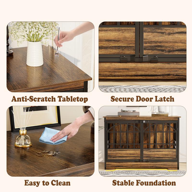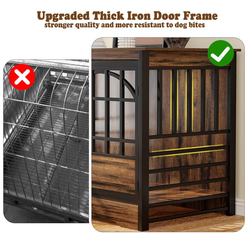 Reinforced & Durable Build – Crafted with premium particle board and a thick iron frame, this crate is chew-resistant, stable, and built to last—ideal for strong, active dogs.