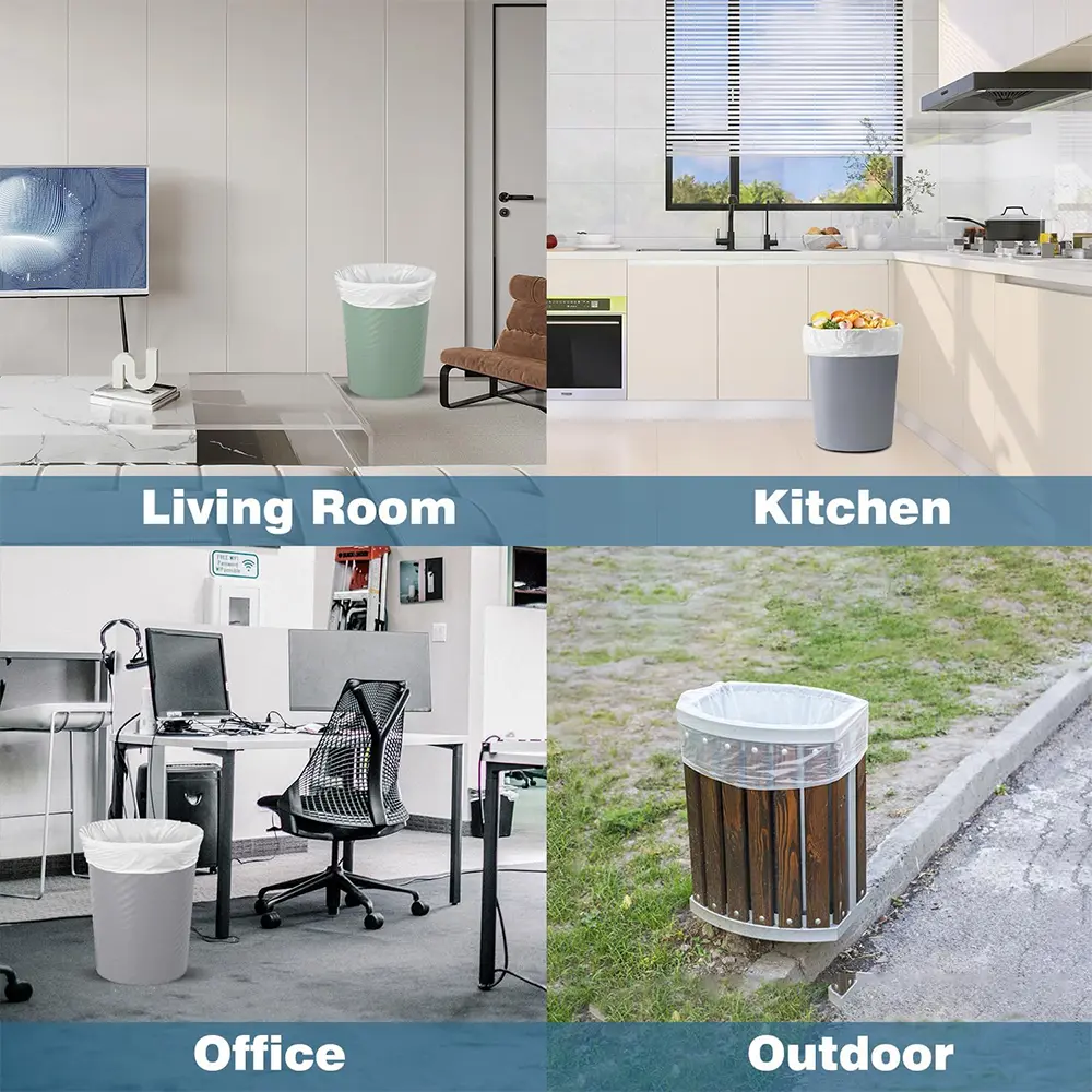 The bag color look white on the box but the reality is the are clear with no draw string. I use them for my recycle. It is a good bag but not for your average household garbage.