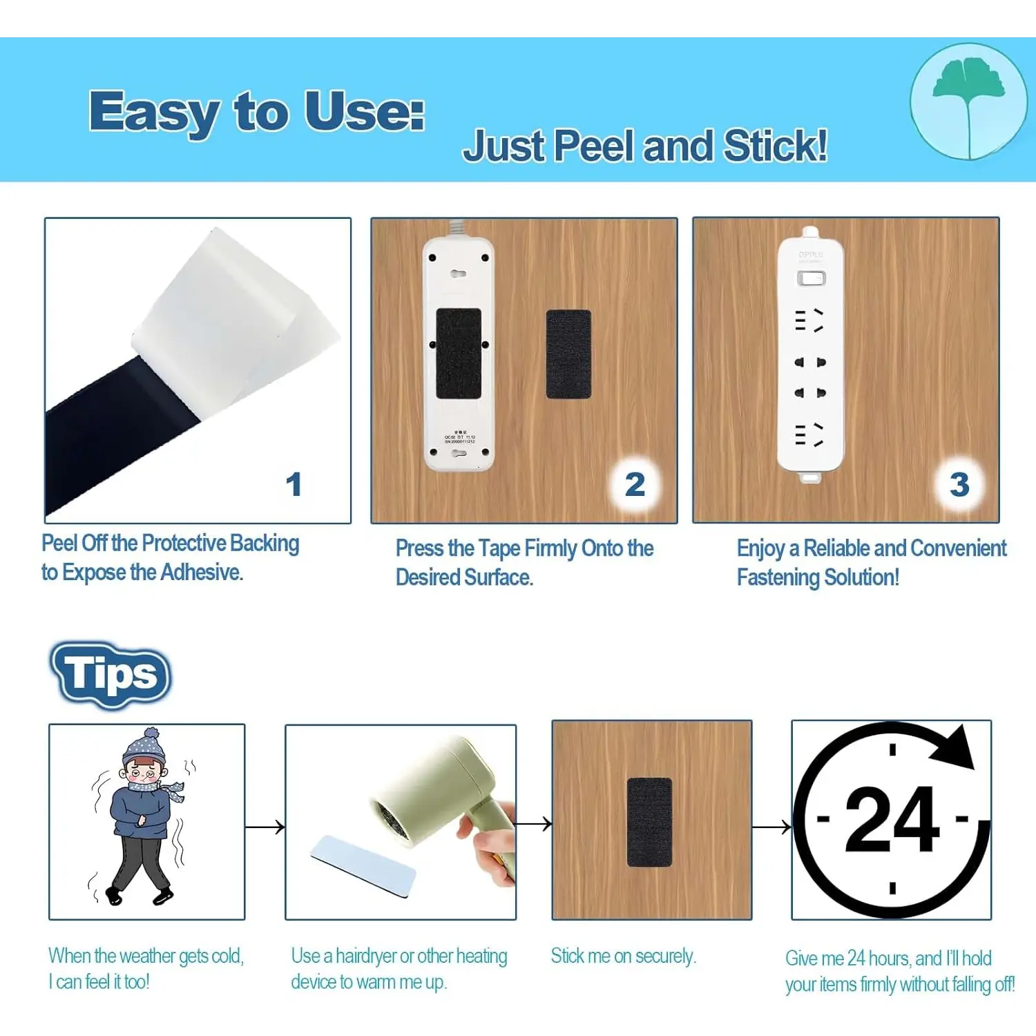 Easy to Use: a hassle-free application! Simply peel off the backing and stick these double-sided strips for quick installation— for both temporary and permanent fastening needs