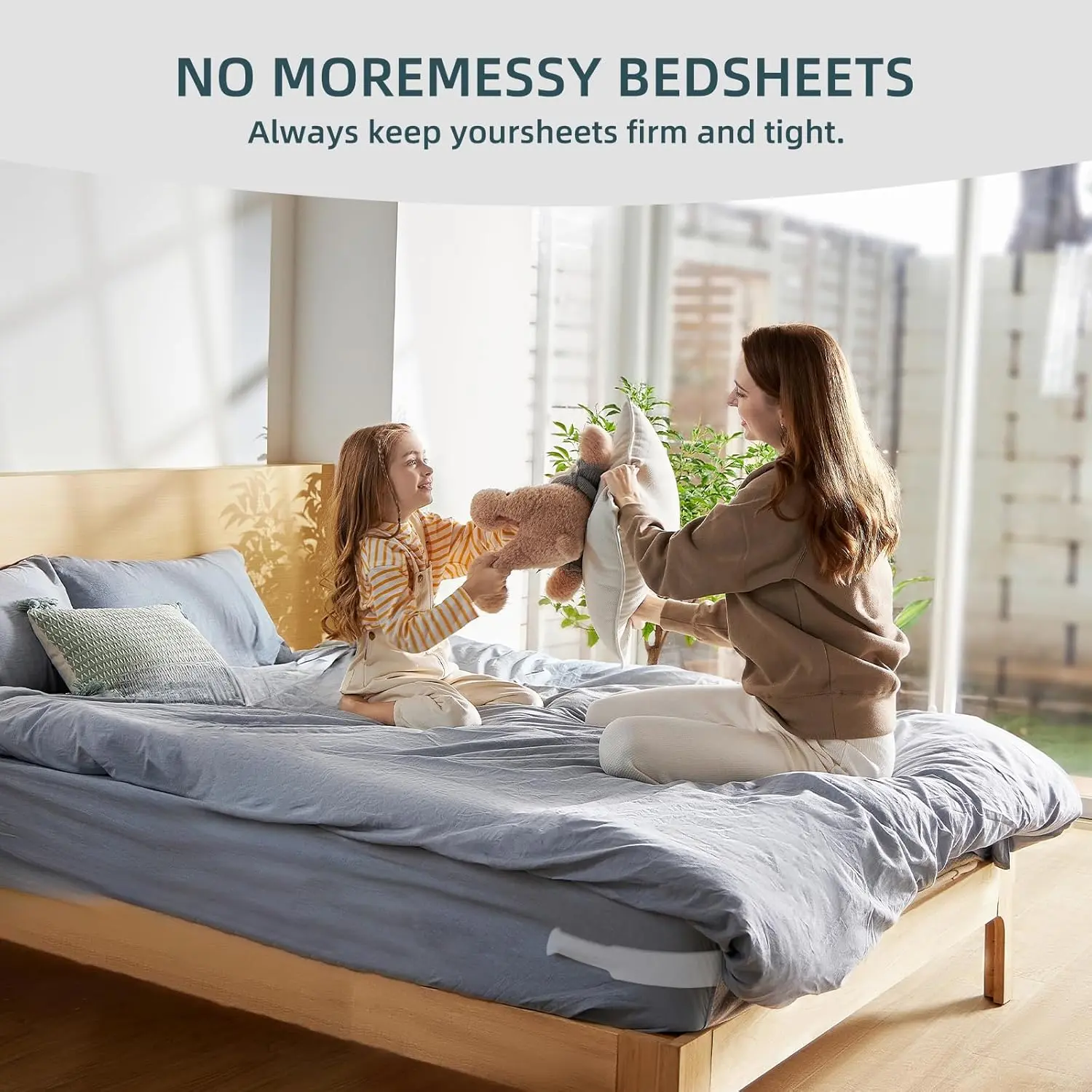 These universally designed corner racks fit all bed sizes—single, double, queen, and king. They suit all bed sheet materials. The high-quality ABS material and innovative sheet clips make them durable and less prone to damage. Wake up to a flat, comfortable bed daily. The sheet fixing straps prevent shifting, improving sleep quality and comfort. No more daily sheet tidying hassles.