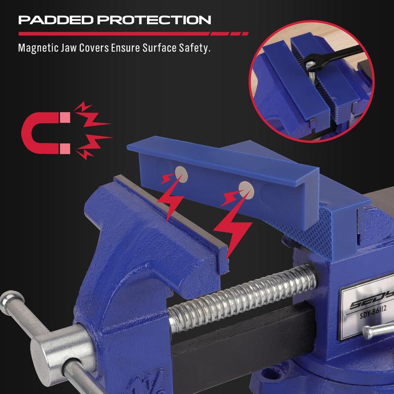 ·MAGNETIC JAW PAD - This kit includes 4-inch thermoplastic polyurethane jaw covers with a special diamond pattern, ensuring grip and product safety. Magnetic design fits a variety of vises, providing ultimate protection during clamping.