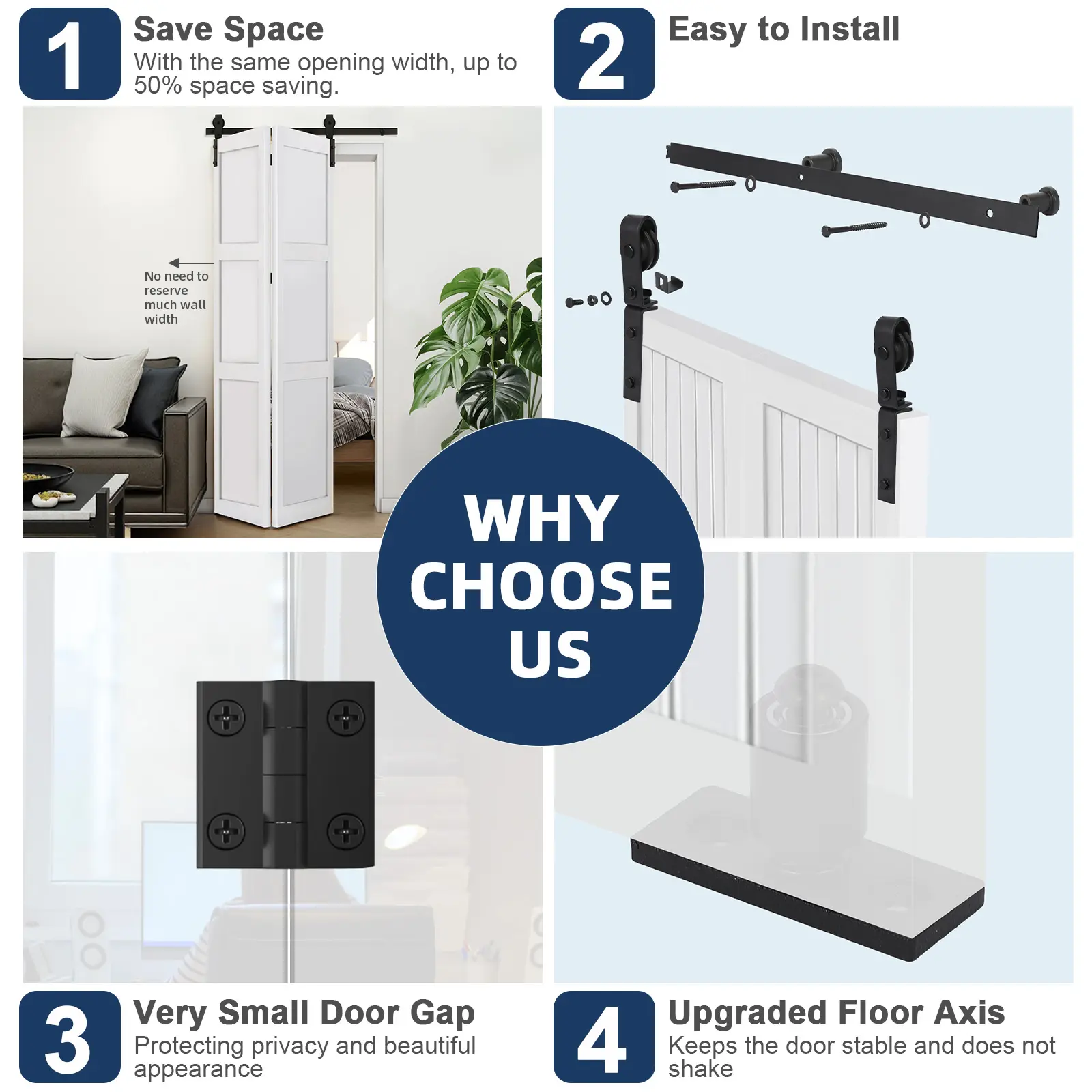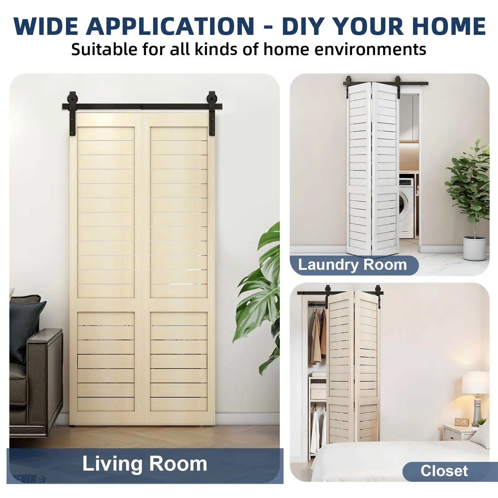 ·Complete Hardware Kit: Includes tracks (choose from 24in, 36in, 52in, 60in, or 72in), rollers, rotating brackets, spacers, hinges, floor guides, sealing strip, screws, and a clear illustrated assembly manual. Door panel not included.
