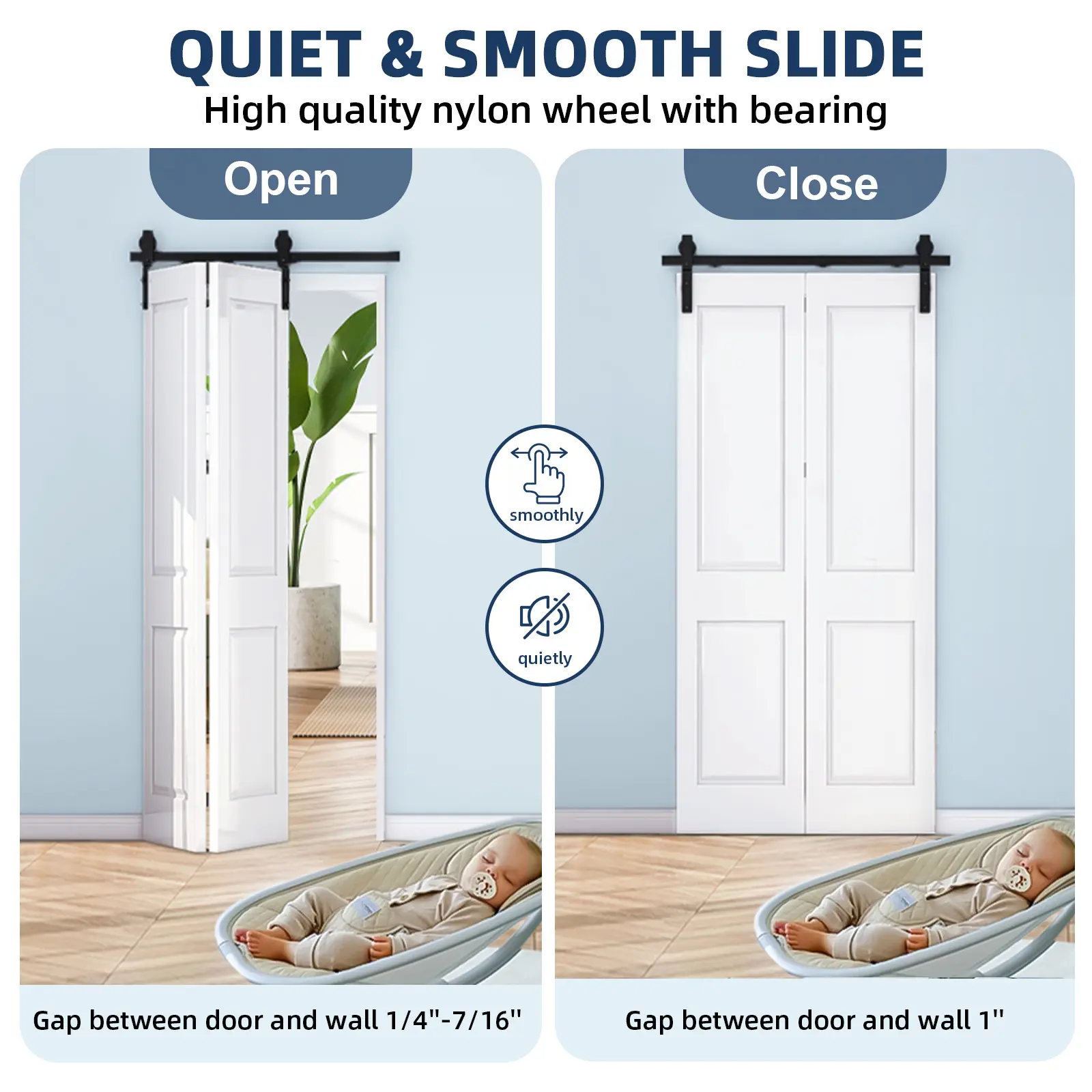 ·Space-Saving Solution: The bi-fold mechanism allows doors to fold neatly against the wall, maximizing room in apartments, closets, pantries, laundry rooms, and more. Minimal opening and closing clearances (1/4''–7/16'' open, 1'' closed) further optimize compact spaces.