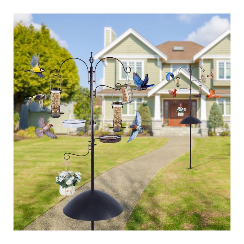 Transform your yard into a wildlife haven with this heavy-duty bird feeding station kit. Imagine enjoying a variety of birds flocking to the multiple height-adjustable hooks and dining on diverse offerings like hoppers, tubes, and suet feeders. Plus, the squirrel baffle ensures your feathered guests' meals are uninterrupted. From Evergreen.