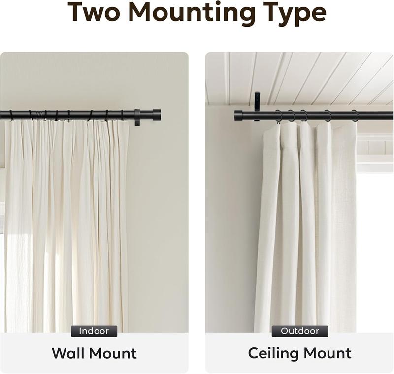 ·MODERN DESIGN & MATTE: This curtain rod features a modern and understated design that is both functional and decorative to the room. Perfect painting technology, so that it presents a smooth matte finish. Passed the salt spray test, it is anti-rust and anti-wear.