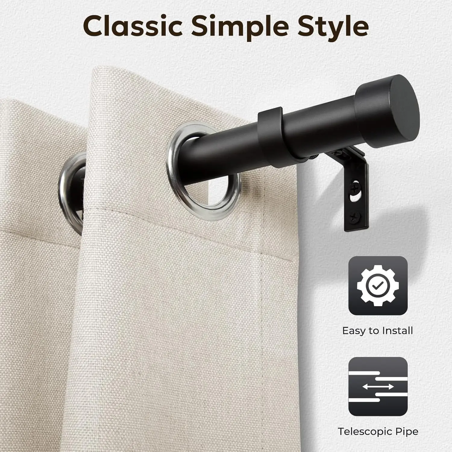 ·ADJUSTABLE & VARIOUS SIZES: You can adjust the length by One Telescopic Pipe to fit different size windows. We offer a choice of eight sizes from short to extra-long curtain rods.