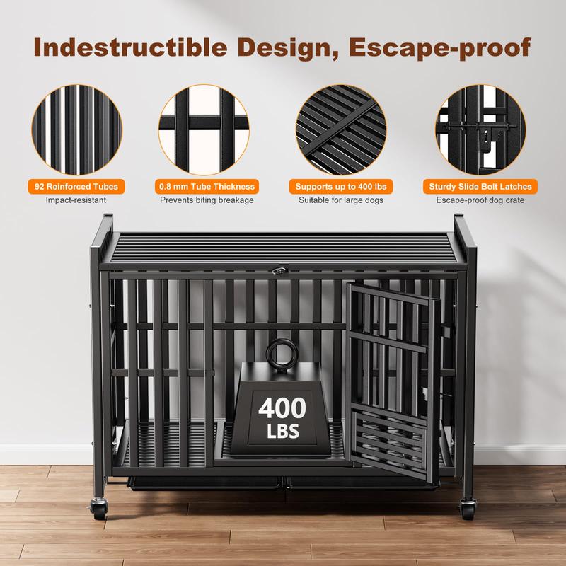 ·Heavy-Duty Steel Build: Crafted with 92 reinforced steel tubes, this heavy duty dog crate is built to withstand even the most powerful dogs. The 0.8 mm thick steel and solid structure offer exceptional durability and strength, supporting up to 400 lbs with ease, perfect for dogs with high anxiety or escape tendencies