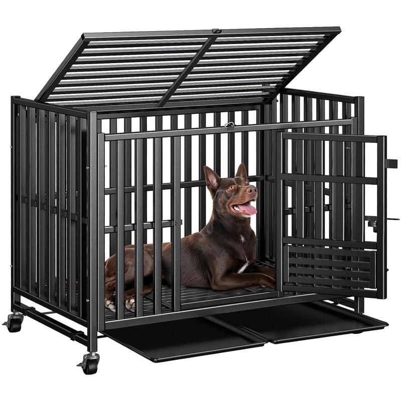 ·Three-Door Design: Includes three access doors: front, top and feeding. This versatile layout allows for easy feeding, cleaning, petting, or simply letting your dog in and out with ease. Heavy duty dog crates for large dogs, a perfect combination of convenience and control