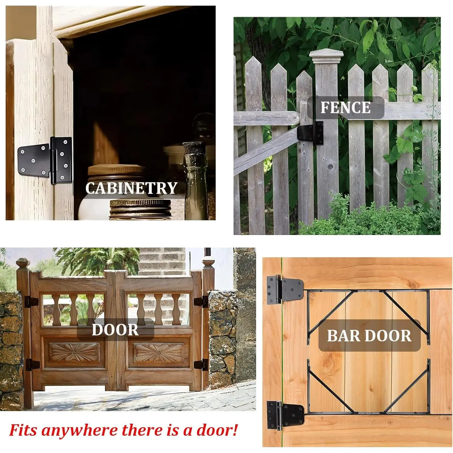 • Material & Durability: These gate hinges are crafted from 1.2" thick solid steel, offering a max capacity of 60 lbs. The matte black coating and galvanized finish ensure rust resistance and durability. Ideal for indoor and outdoor use. 🛠️