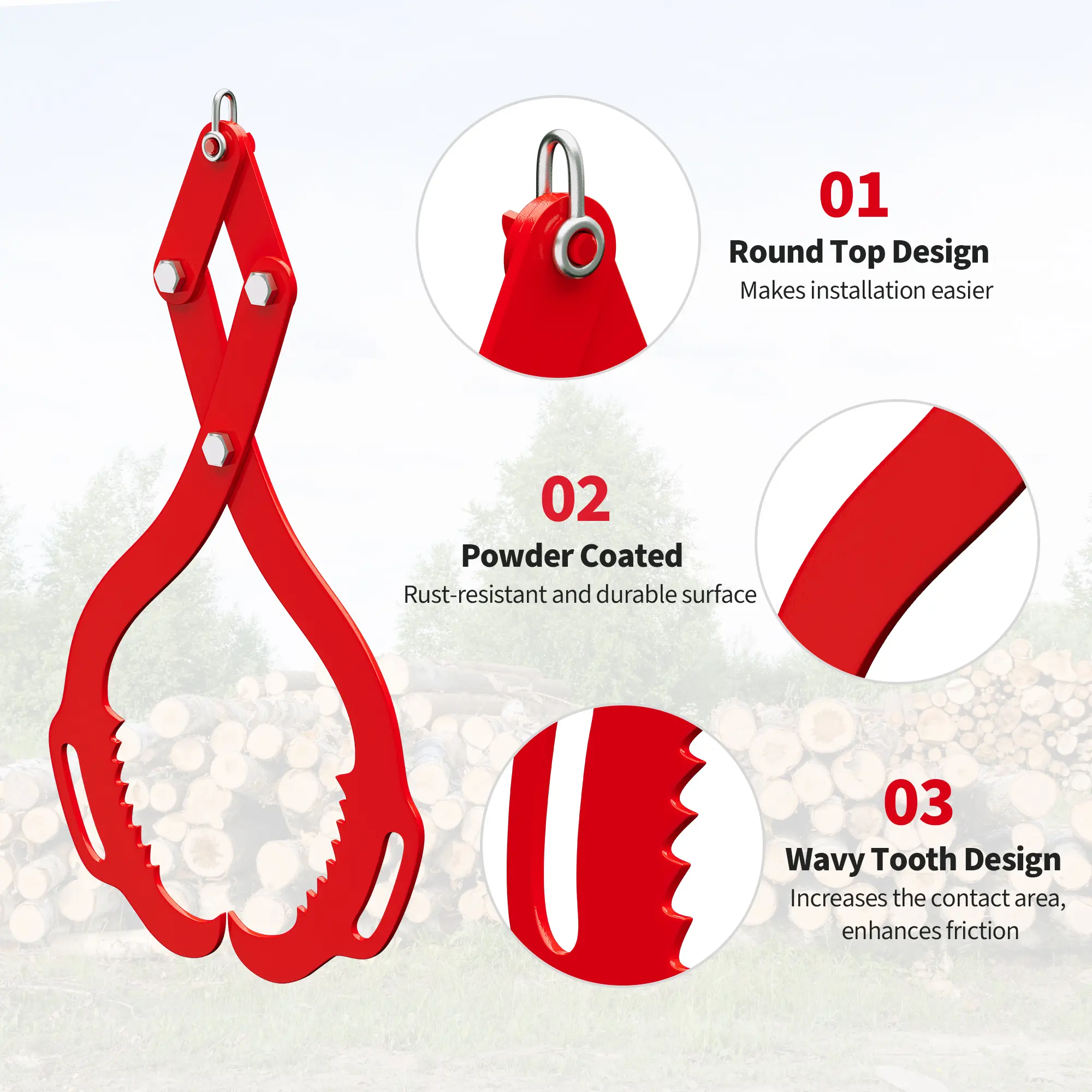 ·Serrated anti-slip claws ensure a secure grip on logs, minimizing slippage and maximizing control during skidding and lifting.