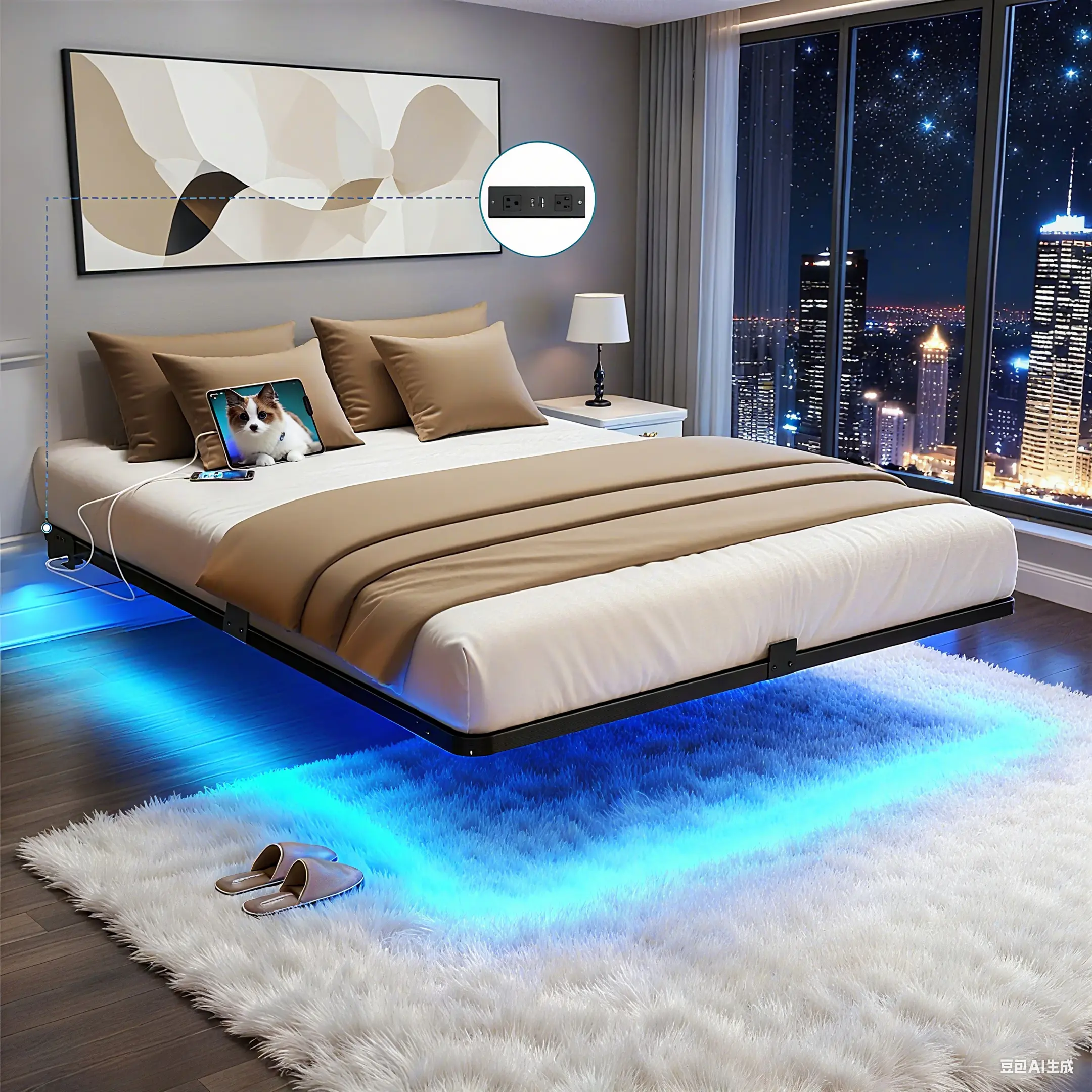 Model 1 Floating Bed Frame with Led Lights
