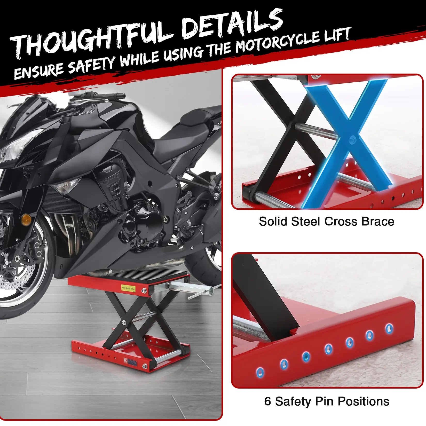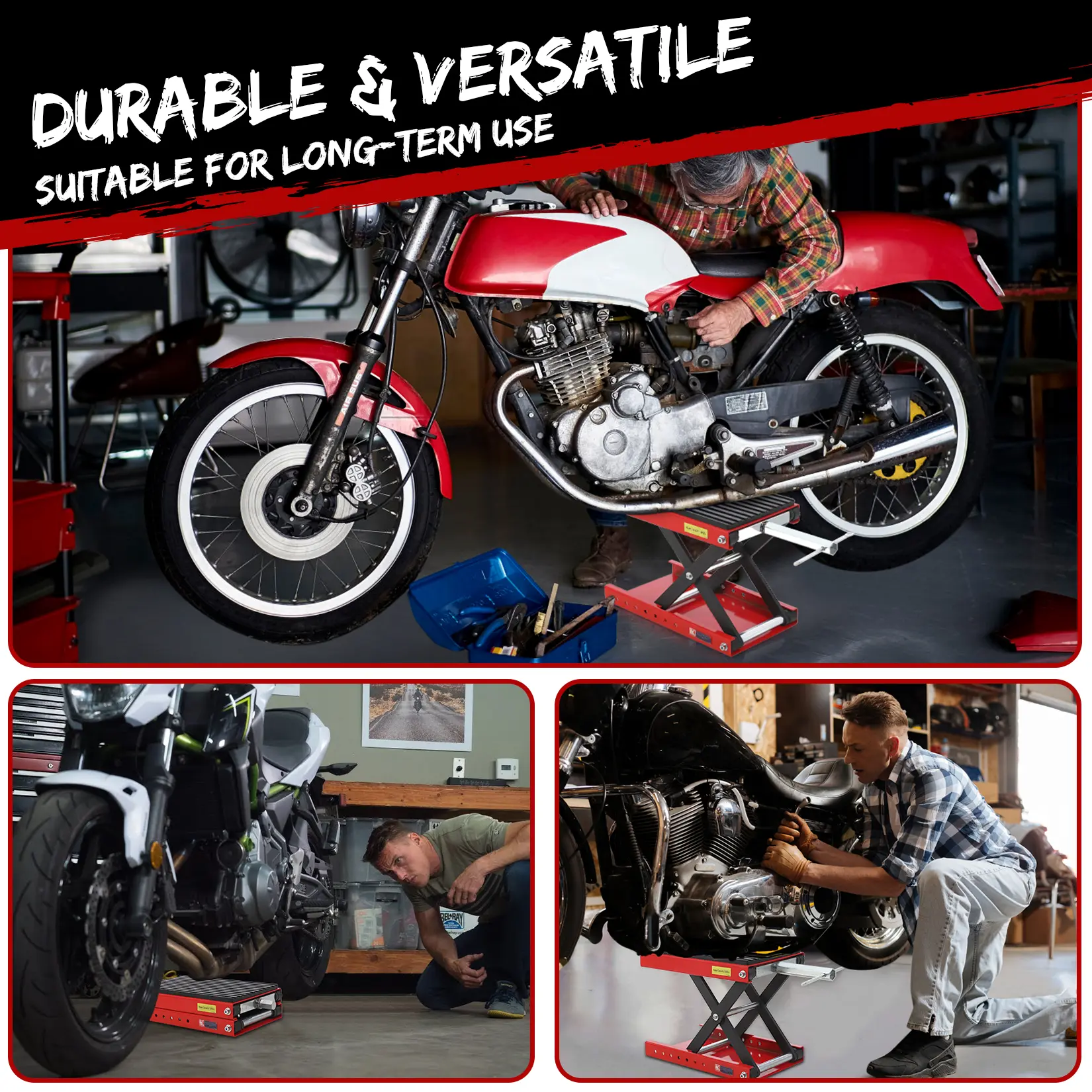 Whether for regular maintenance, repairs, or cleaning, this motorcycle jack combines strength, safety, and convenience. Trust this professional-grade lift to enhance your motorcycle handling experience.