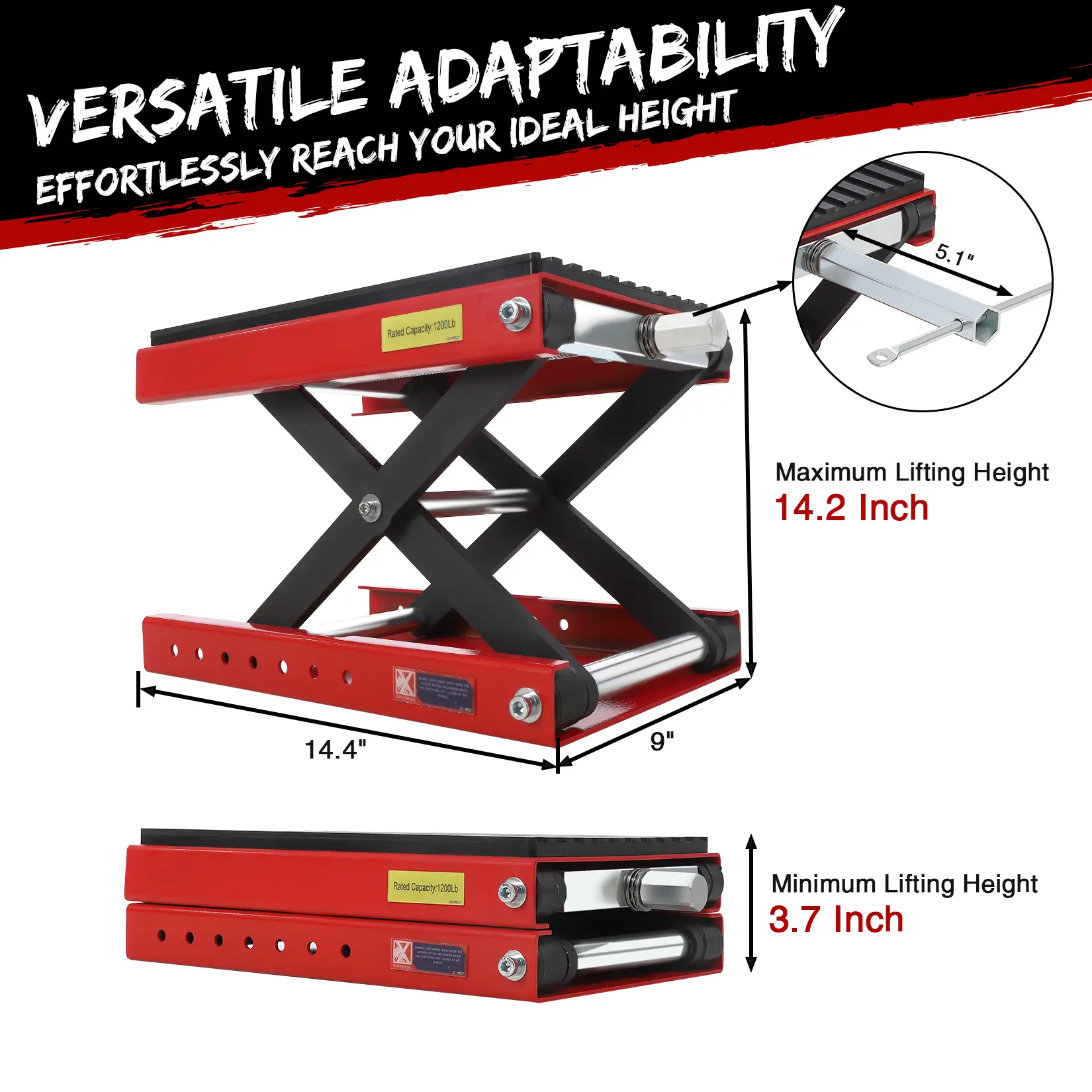 ·Robust Load Capacity: Built from high-strength Q235 steel, the lift jack supports up to 1200 lbs, ensuring stable lifting for a wide range of motorcycles and ATVs.