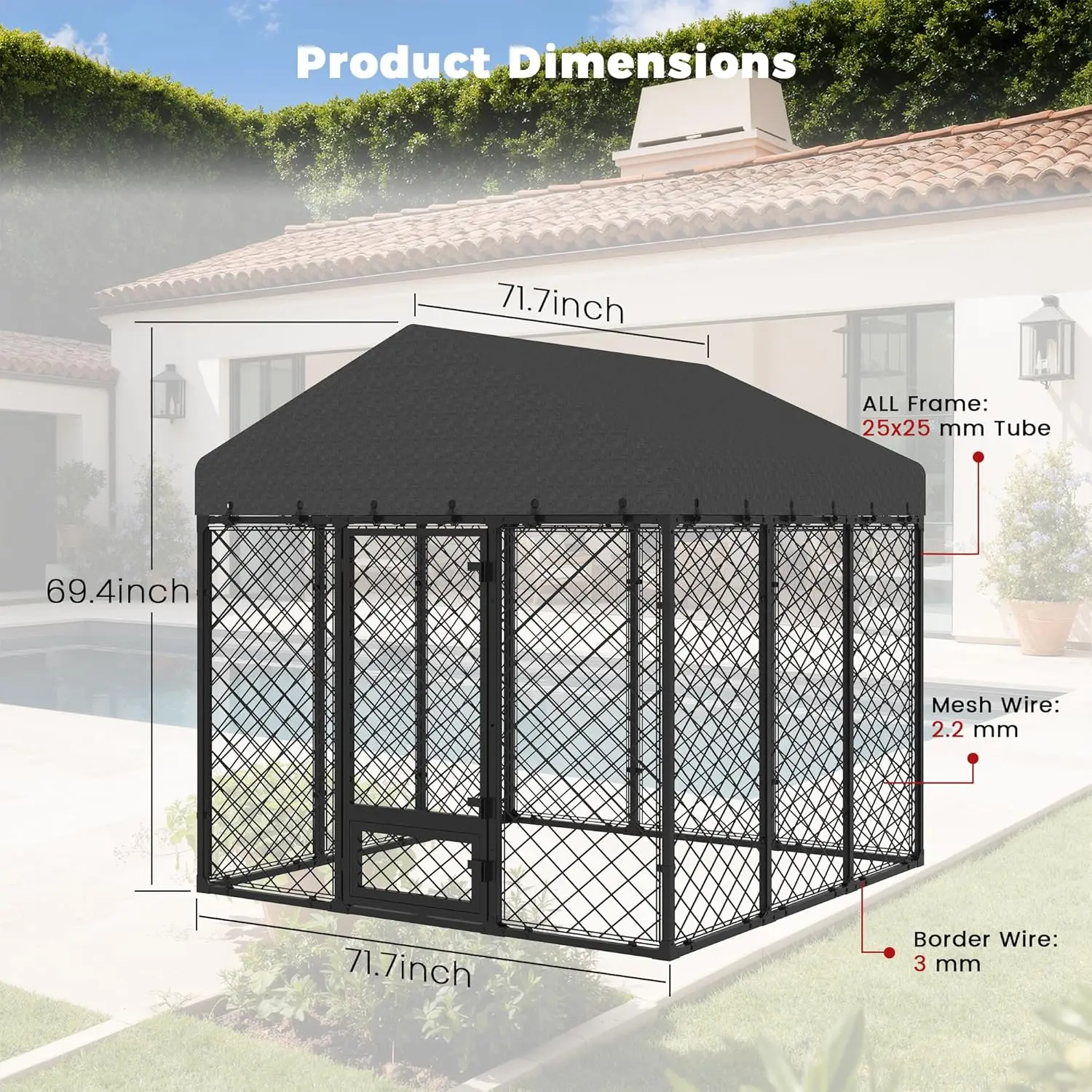 HEAVY-DUTY METAL CONSTRUCTION: Built with reinforced, anti-rust metal frames and 3mm thick wire mesh for superior strength and bite resistance. This heavy duty dog kennel outdoor ensures long-lasting security for large breed dogs without corrosion.