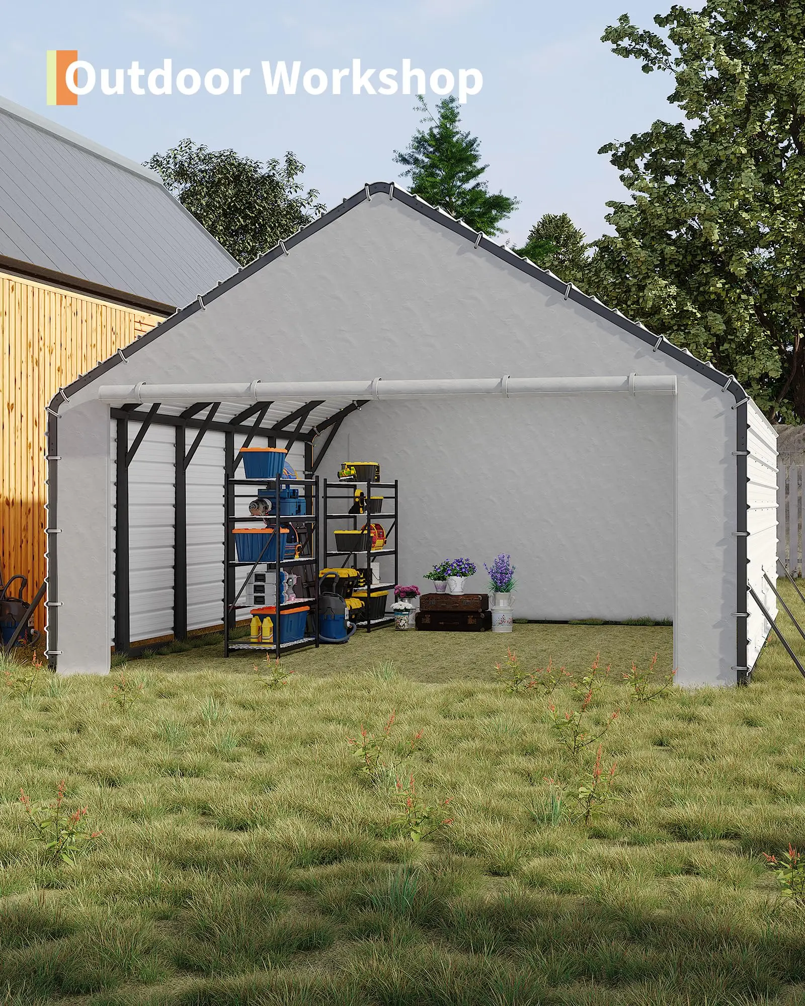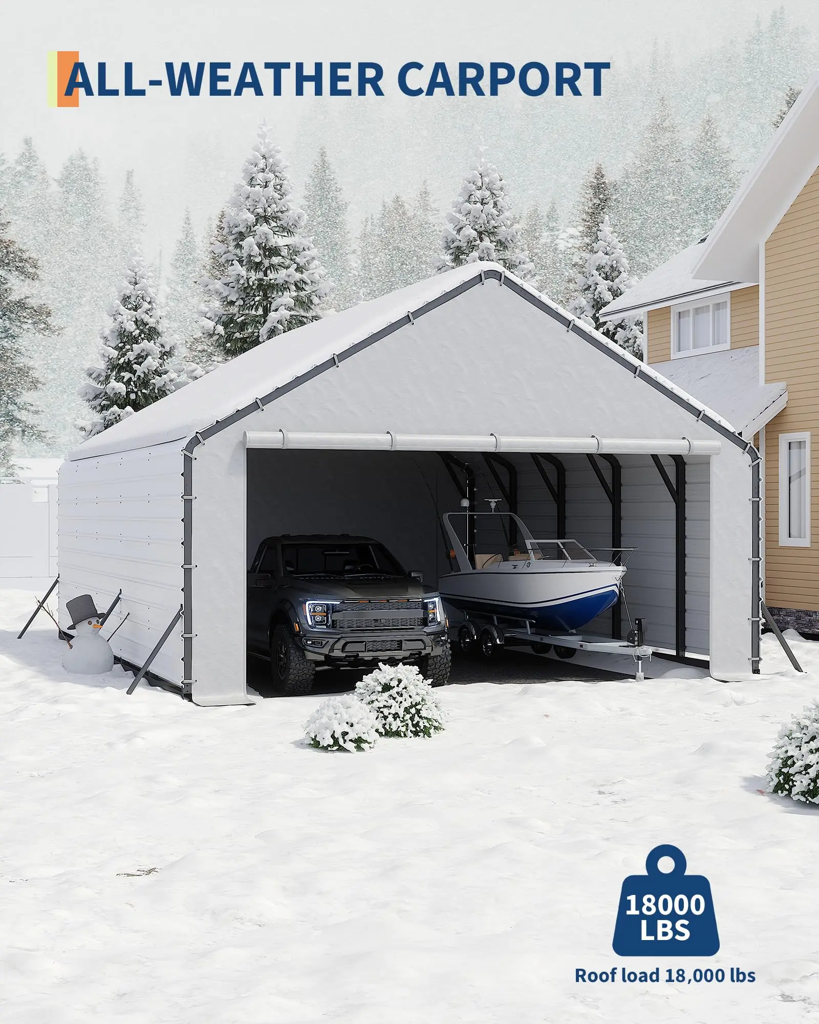 [Compatibility] Fits other carports under 20-ft door width, 150° roof pitch, 12'8'' peak height, and 7'5'' side height