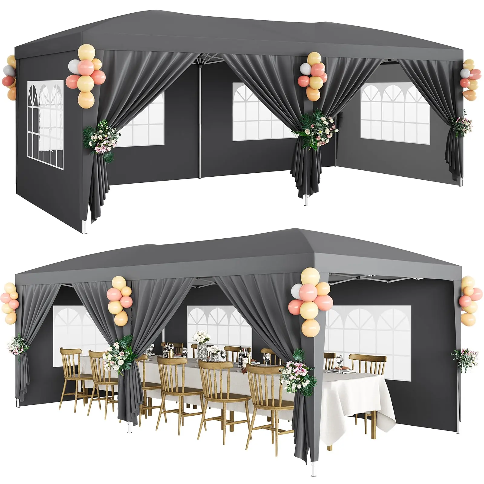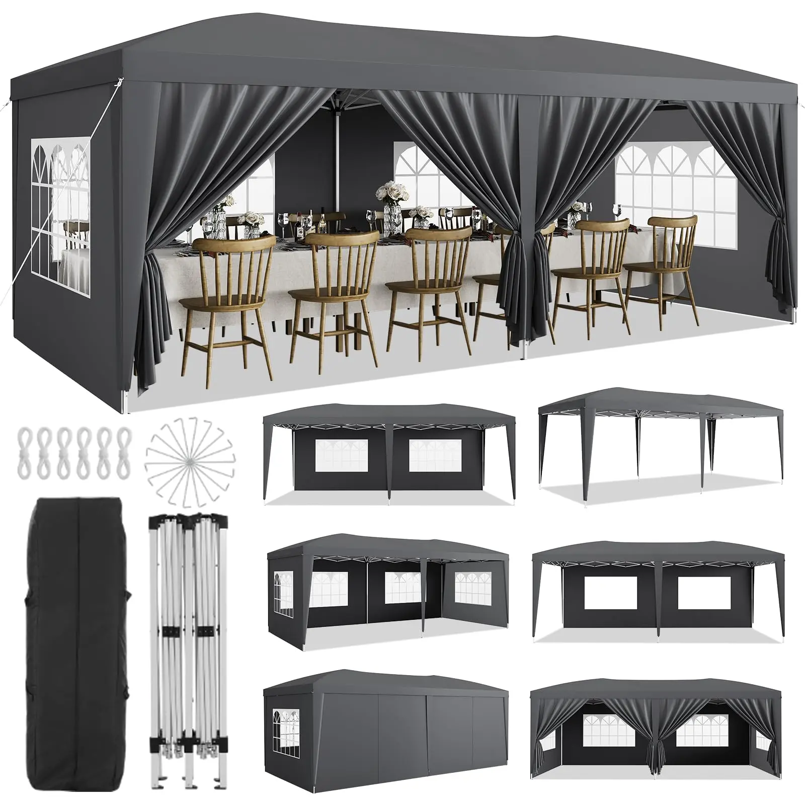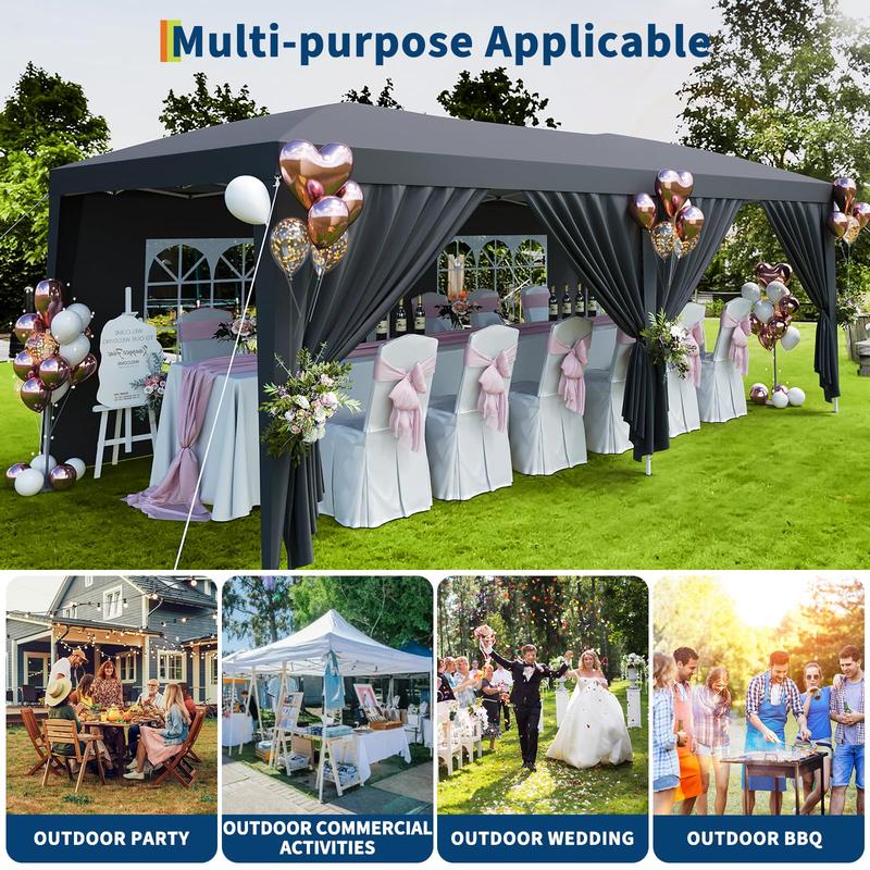 · 【Packing List】1 x 10x20 commercial pop up canopy frame, 1 x 10x20 tent top cover, 6 x PU coated side curtains, 4 x 210D Oxford cloth PVC coating, 18 x ground pegs, 6 x wind ropes, 1 x installation manual. We provide you with the best service, if you have any questions, please feel free to contact us. Choosing us will be your right decision.