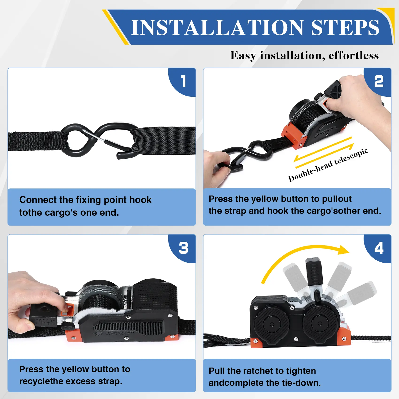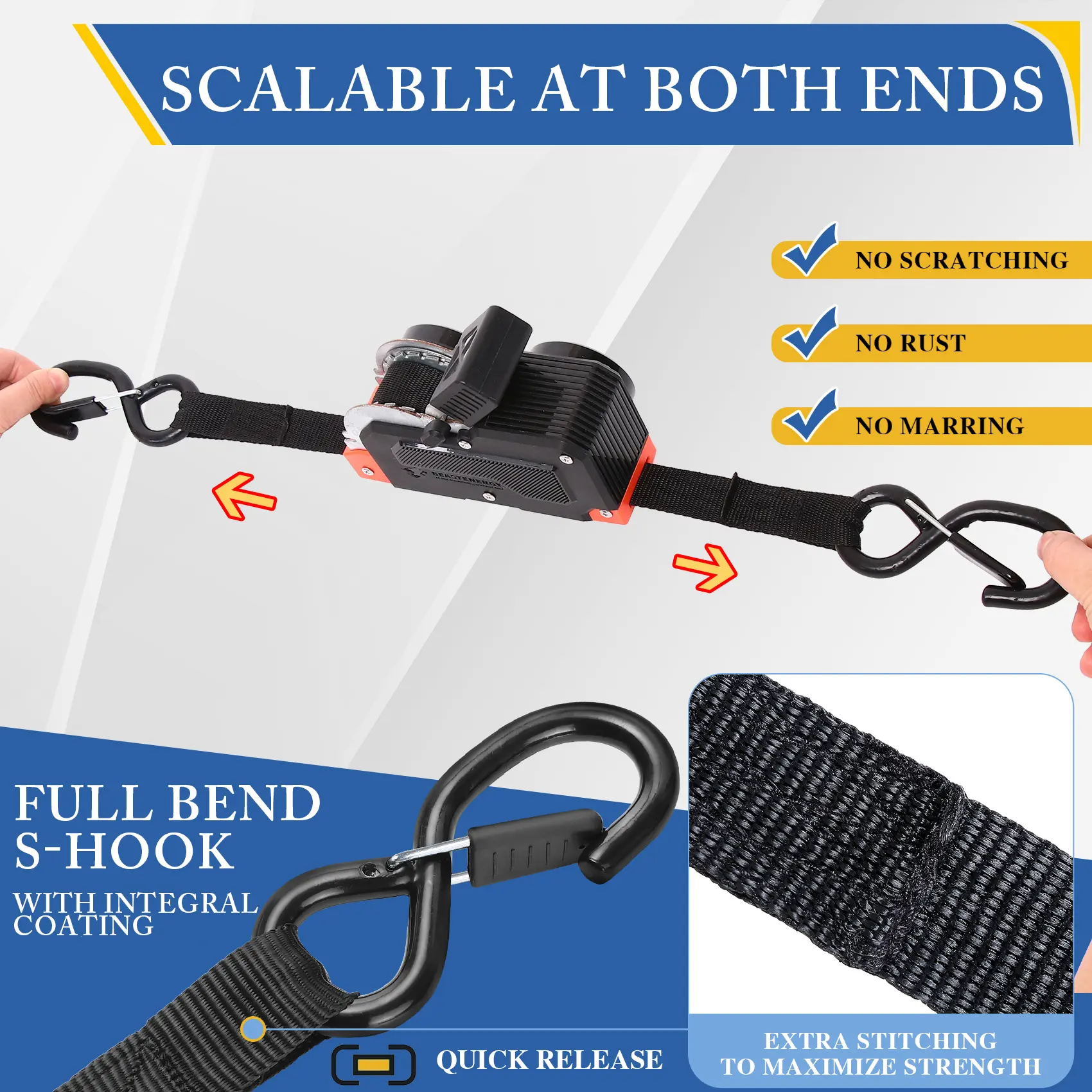 ·Freely Adjustable Ratchet Position: The straps allow for easy adjustment, ensuring a secure fit. The S-hook with clip adds extra versatility for various applications. 🛠️
