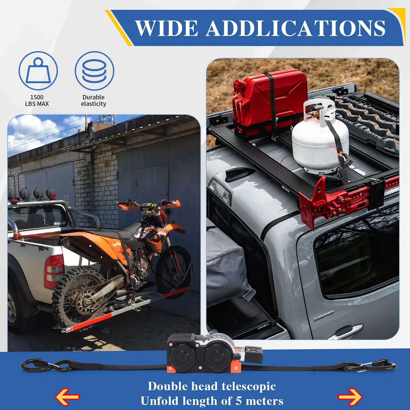 ·Dual-End Retractable Ratchet Straps: These straps measure 1" x 20in, offering a robust 1650lb heavy-duty tie-down. Perfect for securing motorcycles, kayaks, boats, and ATVs. 🚲🛶