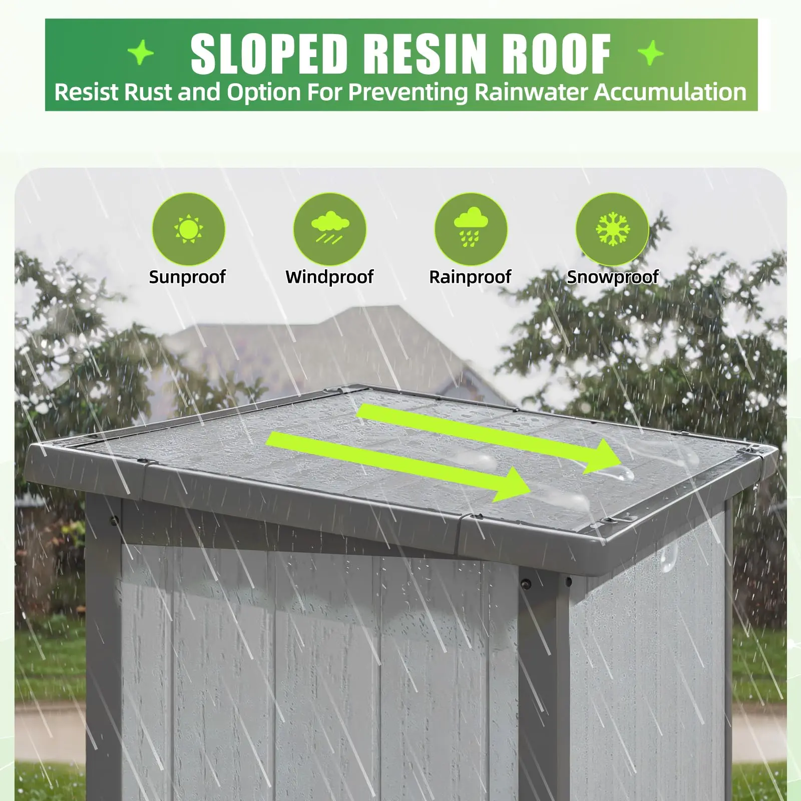·Weather-Resistant Protection:The slanted plastic roof design prevents water from pooling during heavy rain, keeping your tools dry. Secure double doors provide an additional barrier against moisture, ensuring your belongings stay protected in wet conditions.