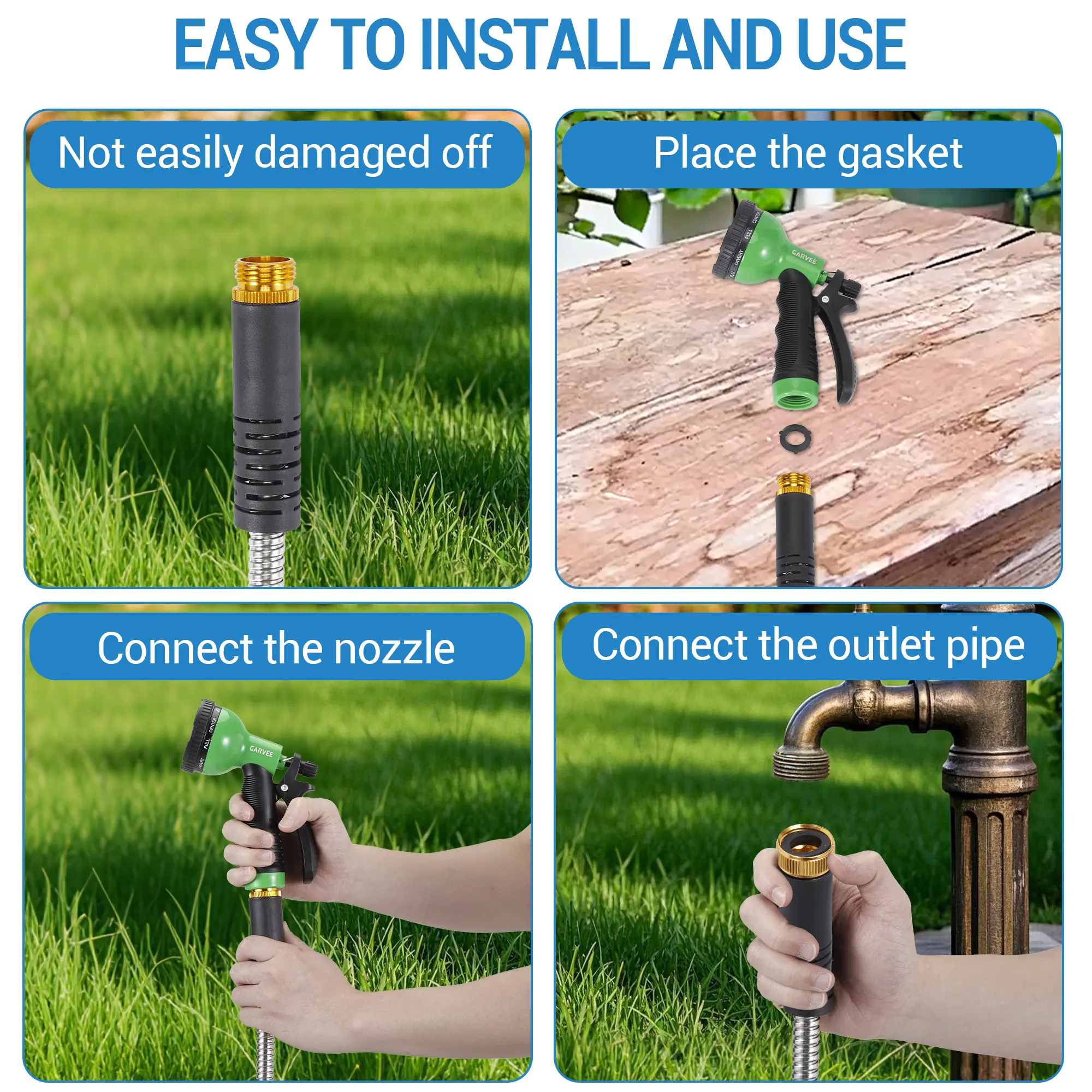 ·Versatile 10-Function Spray Nozzle: Featuring an ergonomic, non-slip grip and simple thumb control, the included zinc alloy nozzle allows you to easily switch between 10 adjustable spray patterns—from a gentle mist for delicate water rateers to a powerful jet for cleaning patios and vehicles.