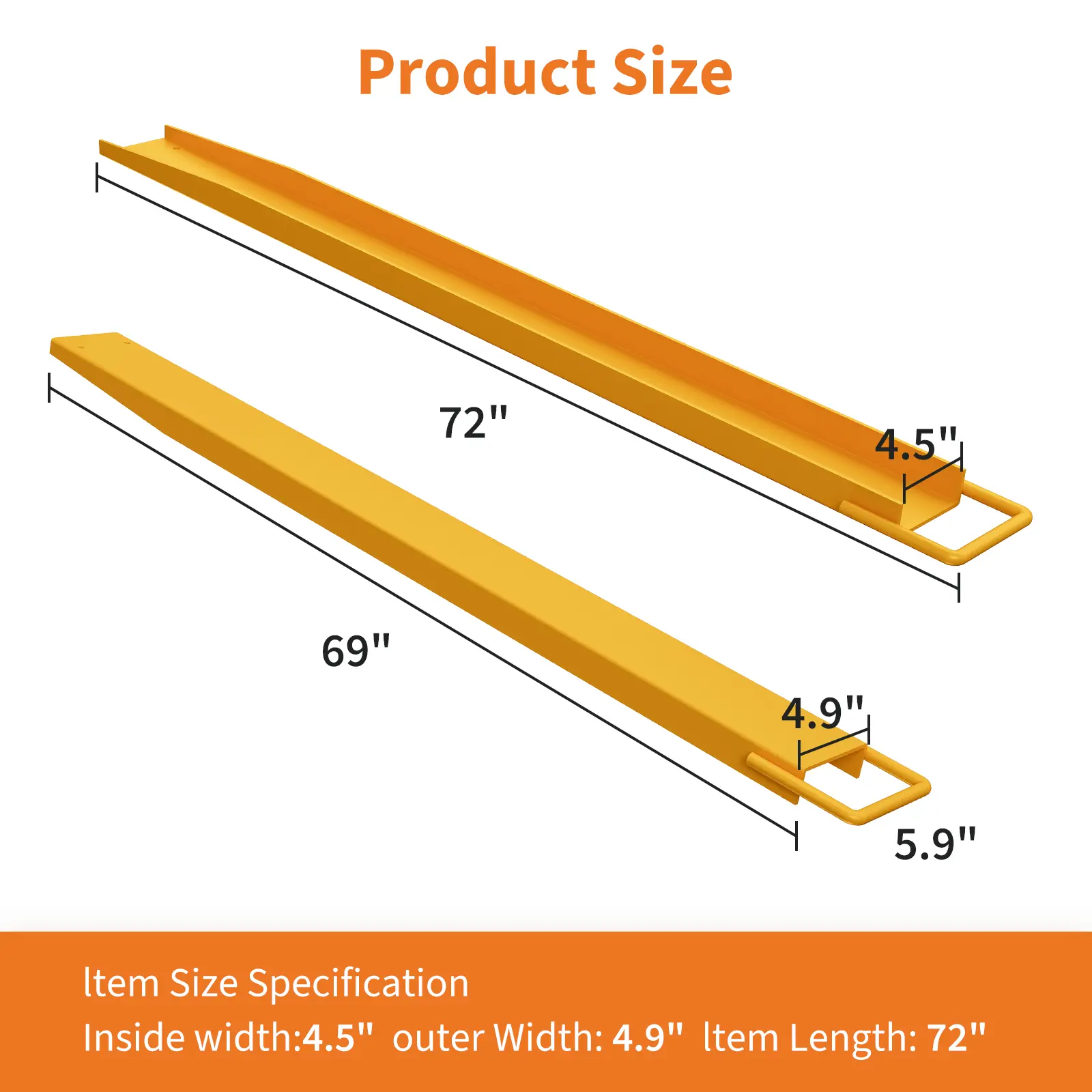 ·1.Heavy-duty alloy steel forklift extensions fit 4.3–4.5 in wide forks, extending length for handling large, bulky loads with facilitate.