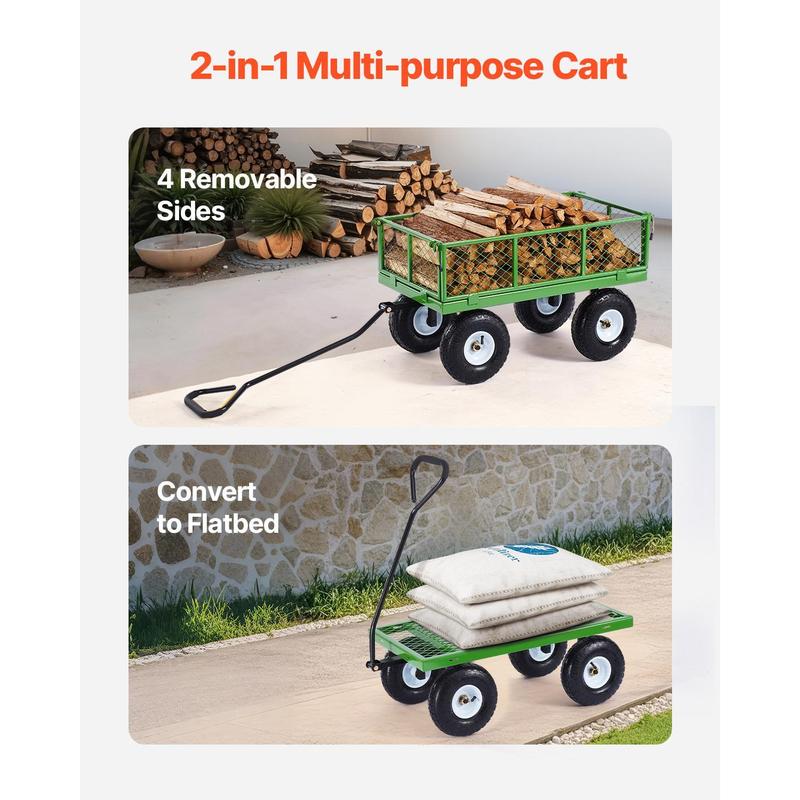 ·2-in-1 Multipurpose Design: With convertible modes as a fenced cart and a flatbed cart, this versatile garden cart wagon adapts to a variety of tasks. Whether you're hauling loose materials or bulky items, it handles them effortlessly. Its 3.33 cu. ft. load bed provides ample space for all your gardening and transportation needs.