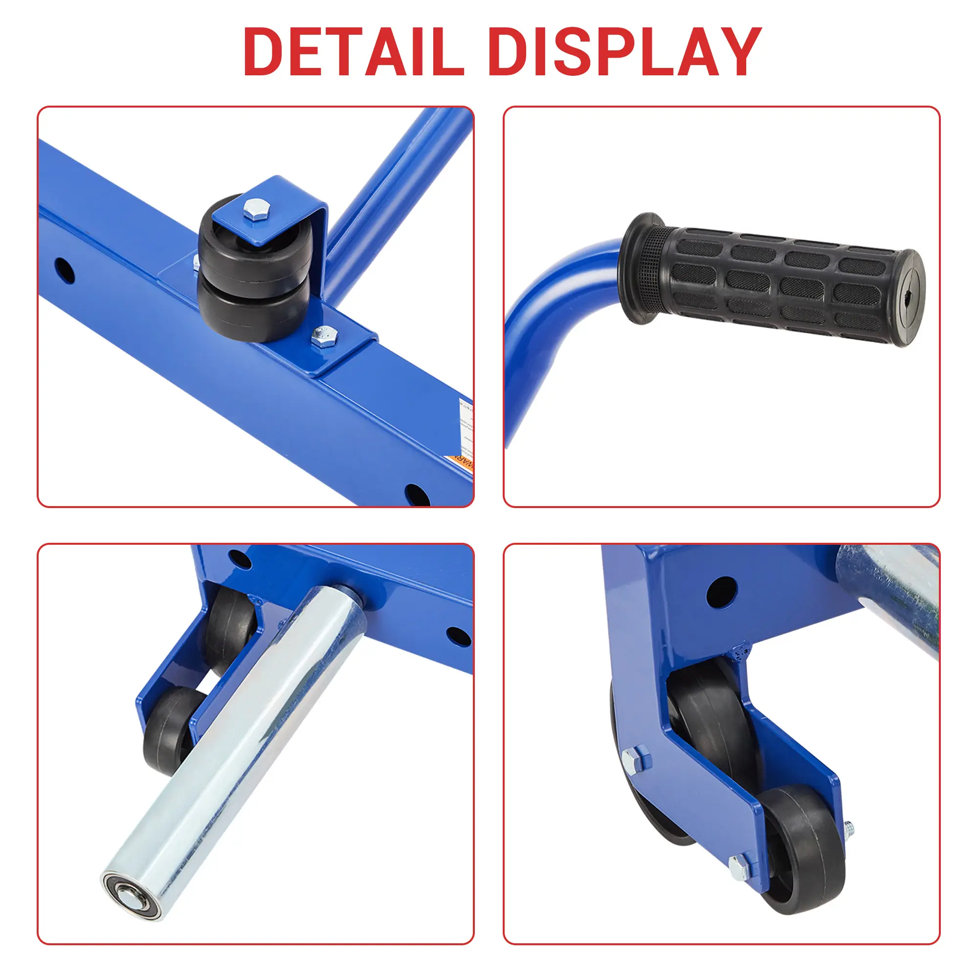 The tire wheel dolly is designed for easy tire movement and positioning, making it ideal for workshops, garages, and professional tire services. Constructed from heavy-duty materials, it can support tires ranging from 11 to 23.8 inches in diameter.