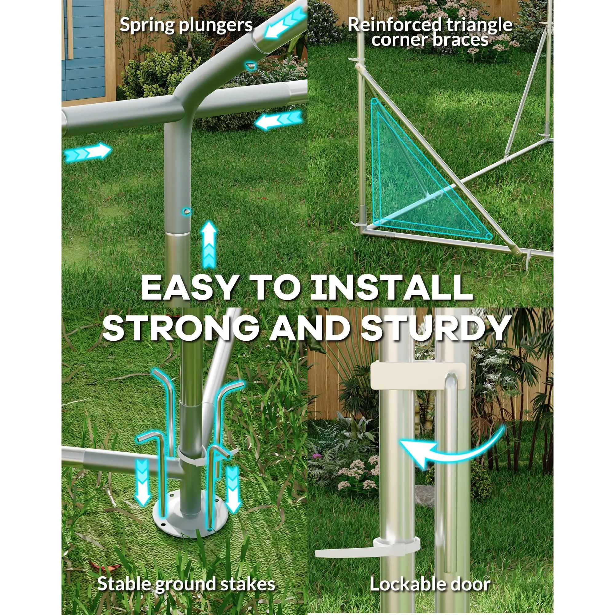 ·4.【Secure Coated Wire Mesh】 Ensure safety with hen house that are lined with close-gap coated wire mesh. This chicken run cage design prevents chickens from escaping and boosts security, making it perfect for portable chicken runs, chicken tunnels, and metal chicken house environments.