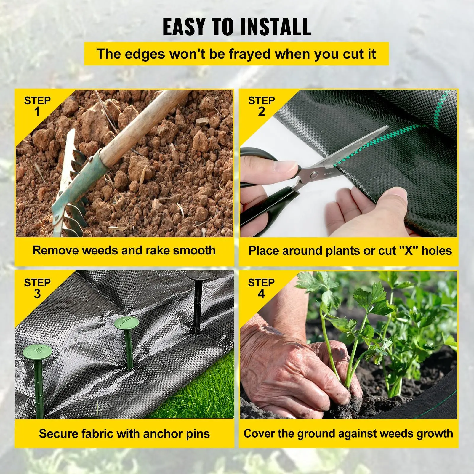 • Easy Installation: Our garden cloth weed barrier is effortless to cut and install. It is convenient to DIY the cloth size and shape to meet your different needs. The garden weed cloth also features green stripes for easy plant alignment. (Installation tools are not included.)