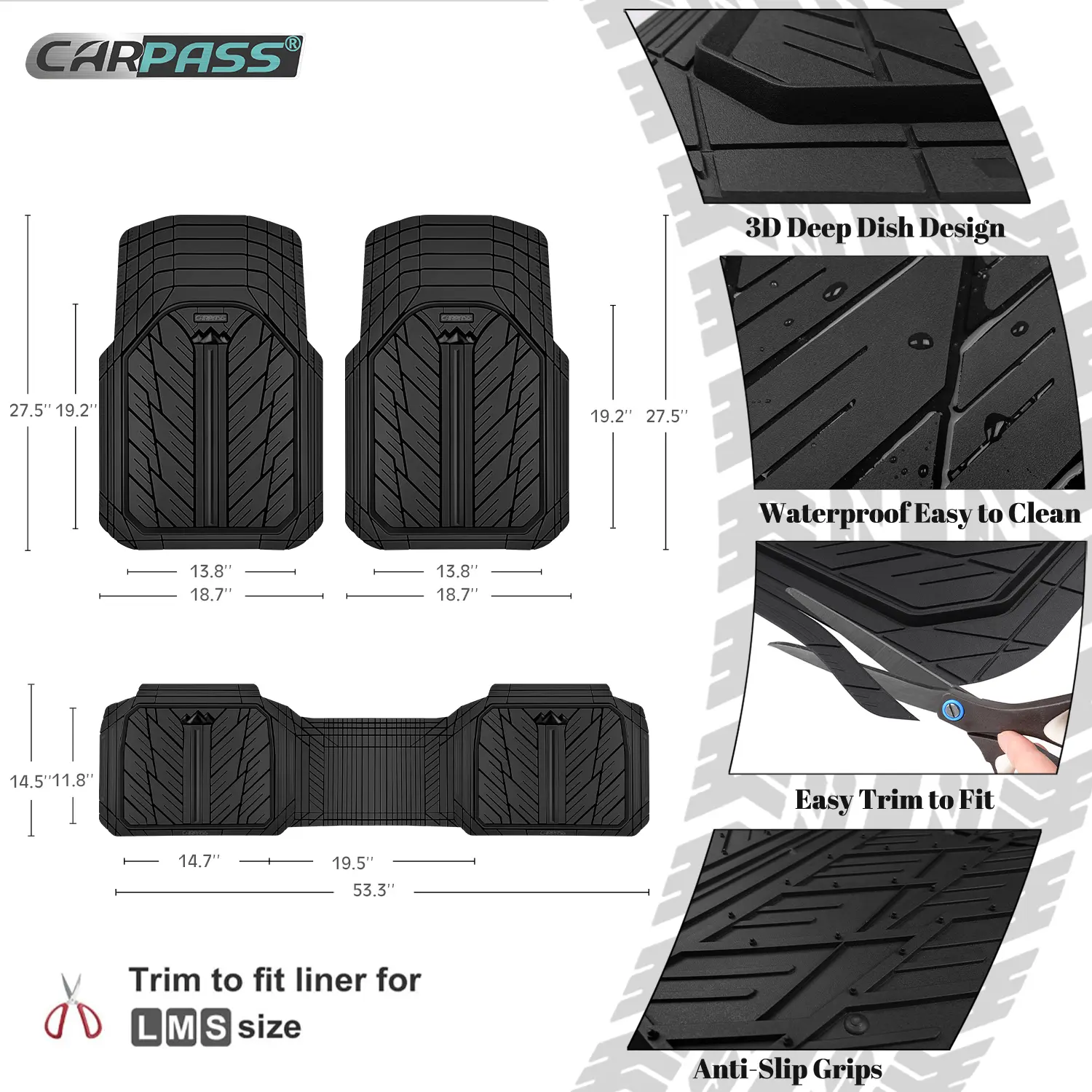 Black Cargo Liner&Car Floor Mats Rubber Heavy duty