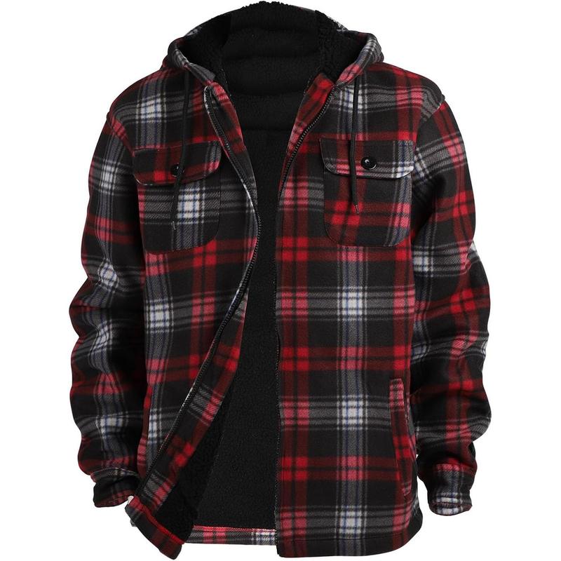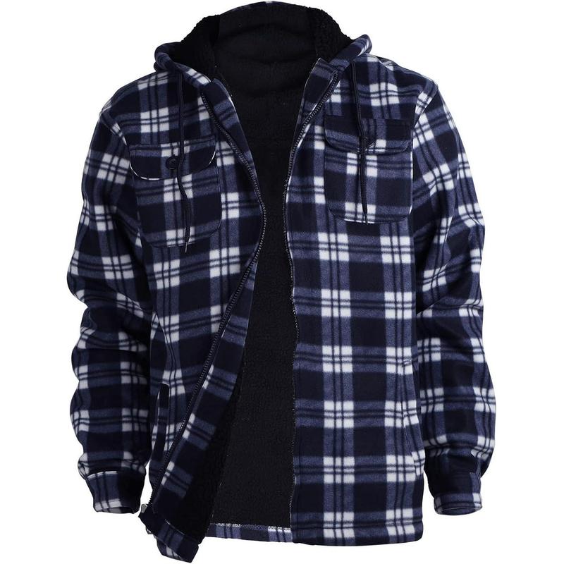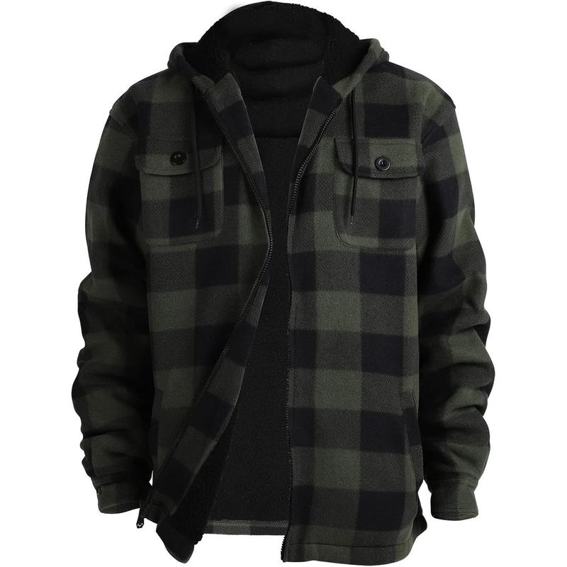 Heavy Thick Flannel Plaid Jacket Sherpa Fleece Lined Hoodies for Men Zip Up Winter Warm Coat Buffalo Zipper Sweatshirt