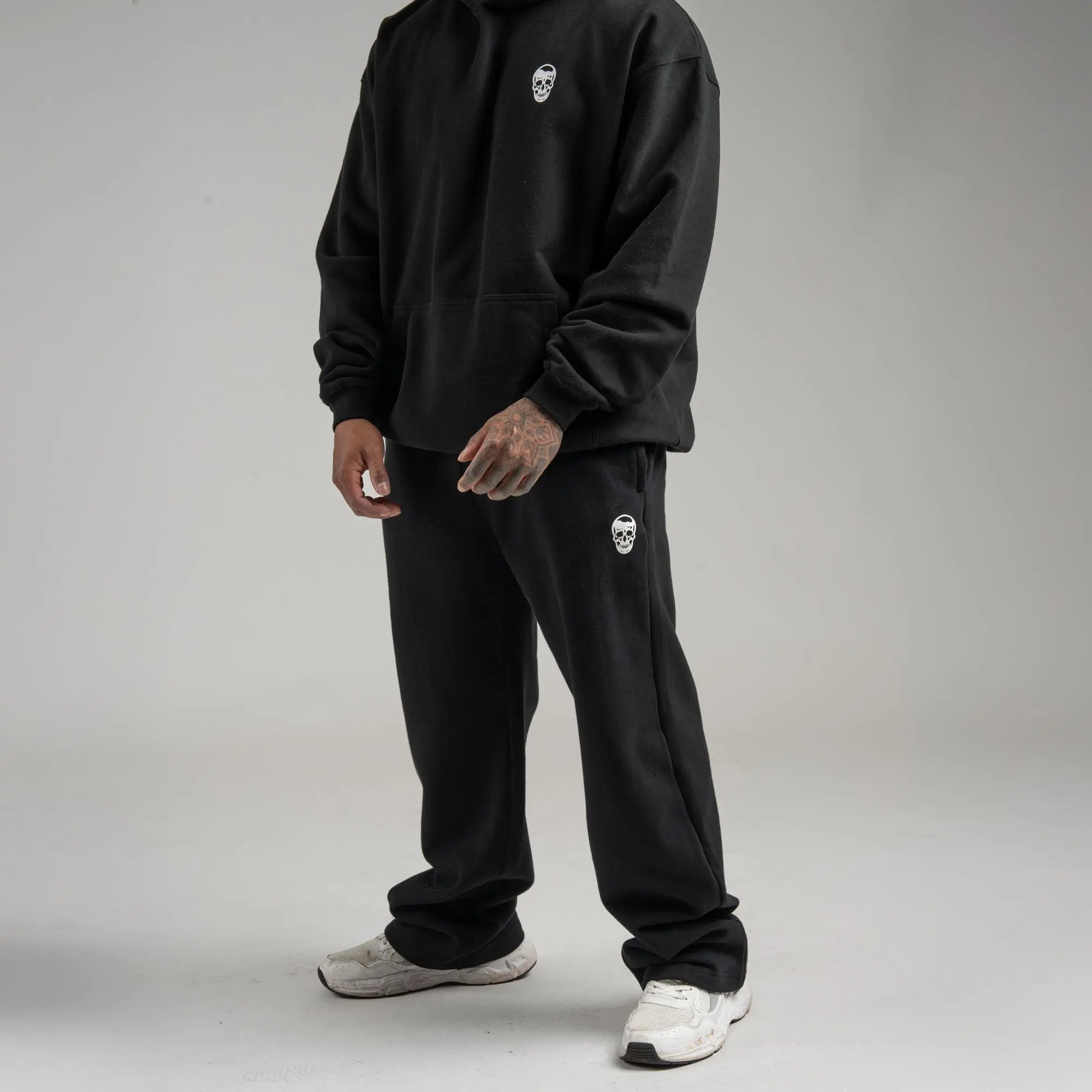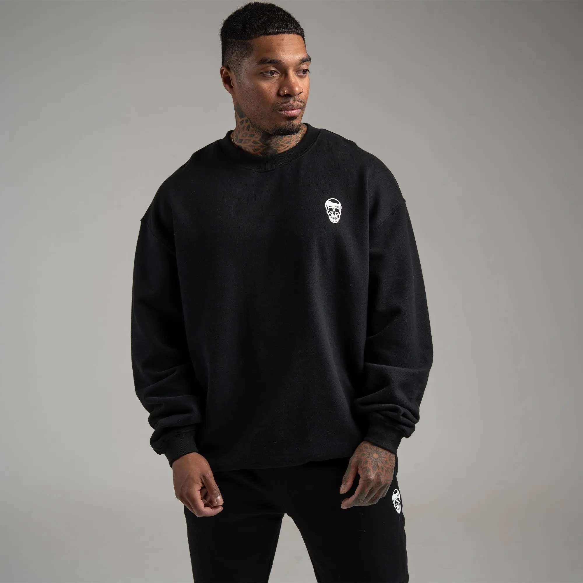 Model is 5'10", 200 lbs wearing XL (Crew + Joggers)