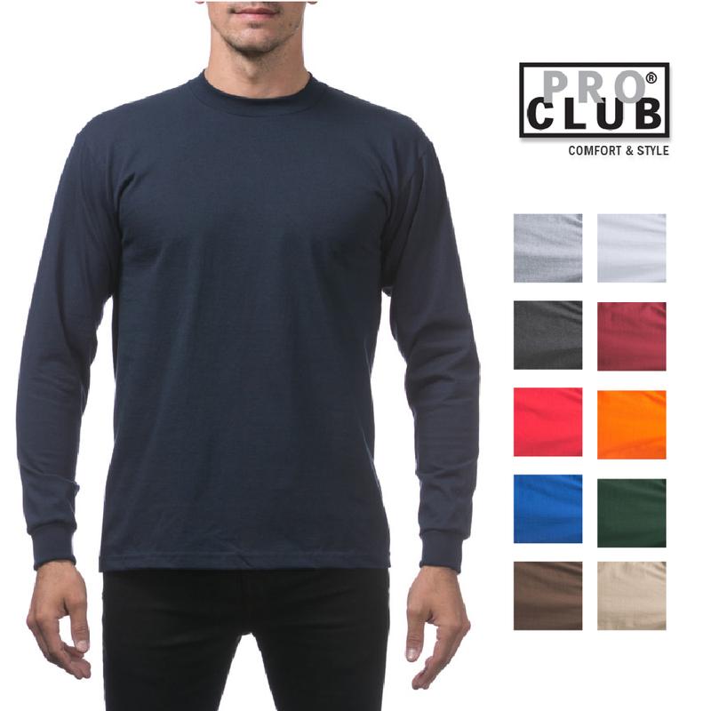 PROCLUB Men's Heavyweight Long Sleeve T Shirts PRO CLUB Casual Long Sleeves T Shirt Cotton Tee Plain Cotton Hip Hop Harem Big Tall (S to 5XLT)