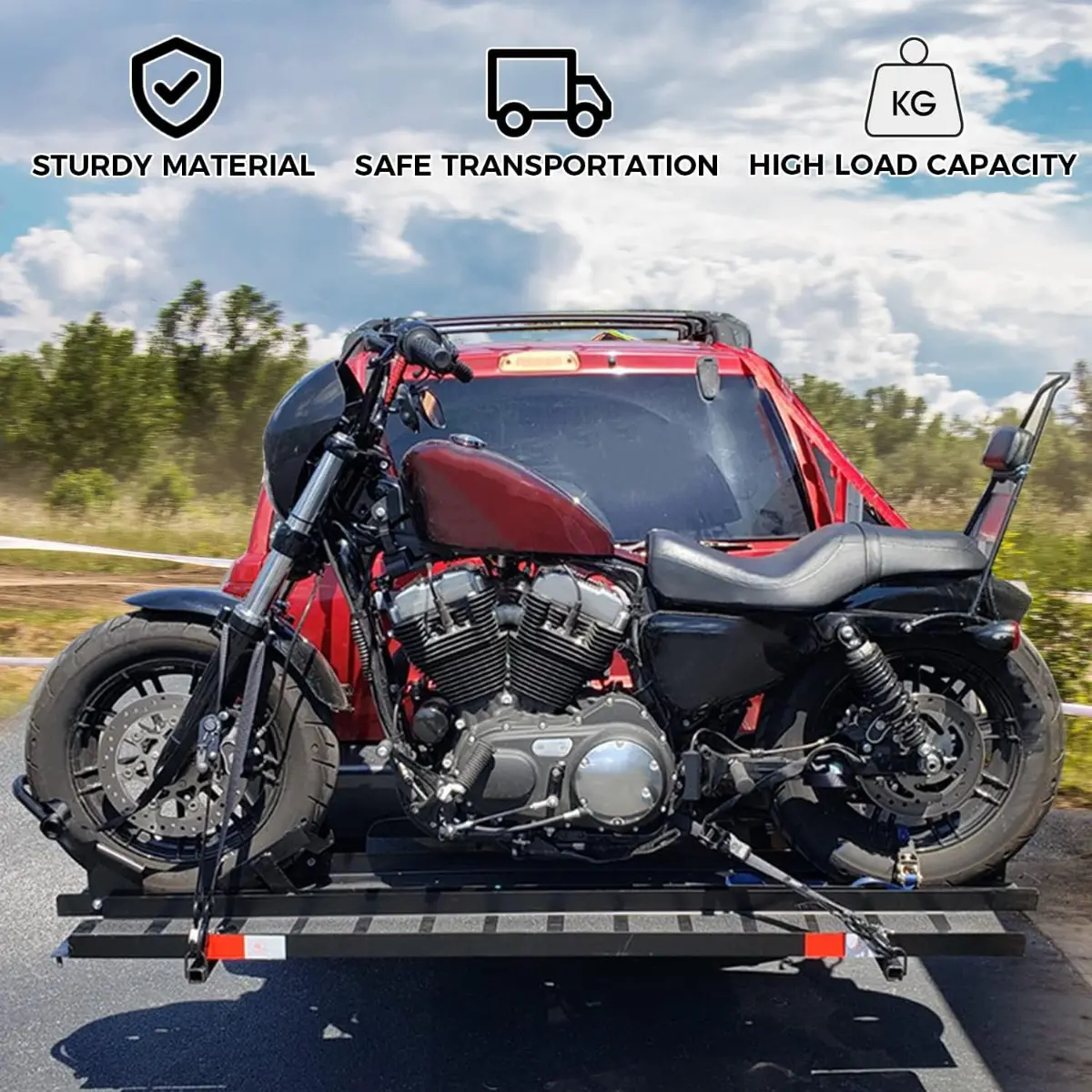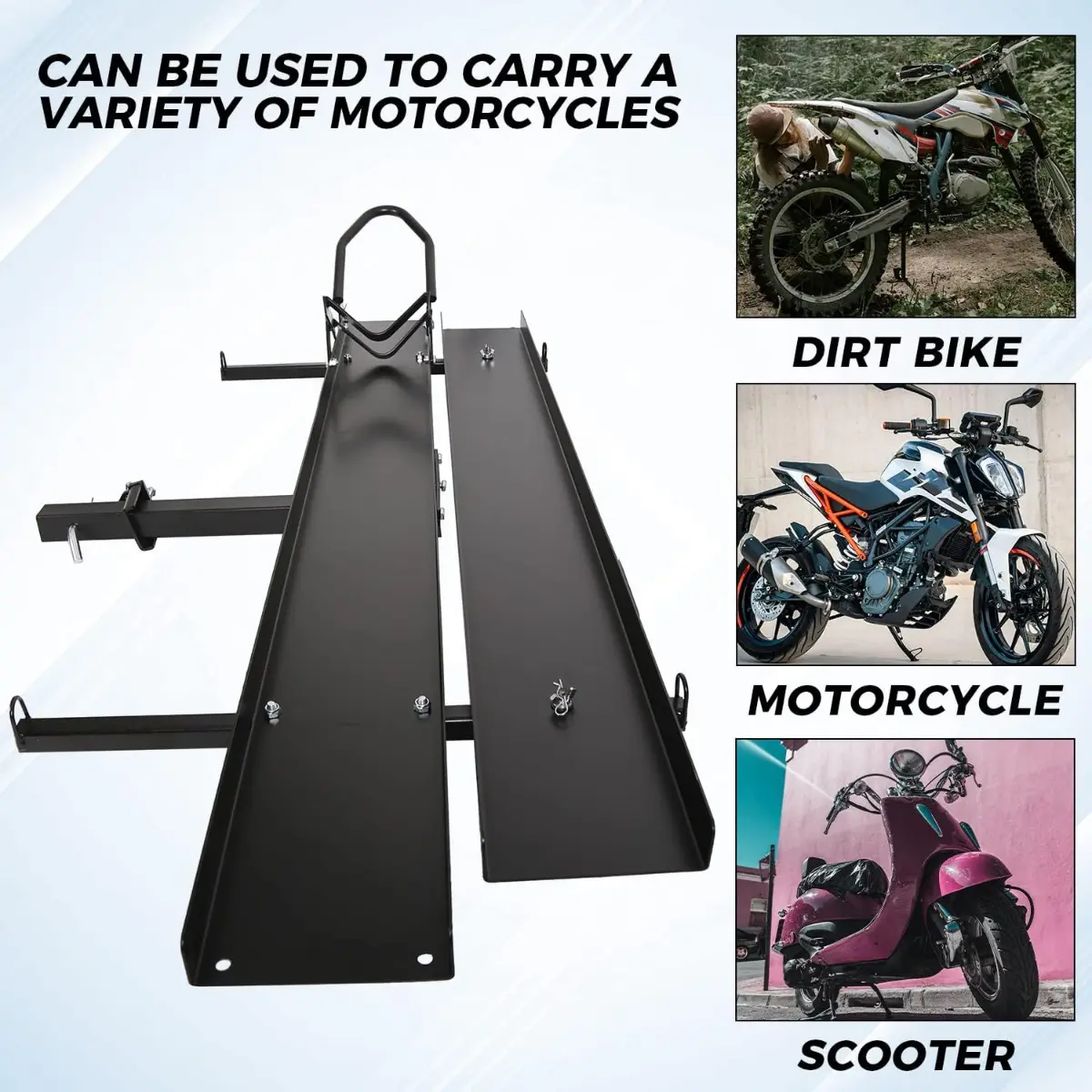 ·Strong Support: This is a great way for you to transport motocross bike, scooters and off road dirt bikes. The motorcycle carrier's heavy-duty steel frame makes it reliable and gives it strength and durability. The scooter trailer is portable in design and features a ramp, making it easy to load your bike onto the carrier