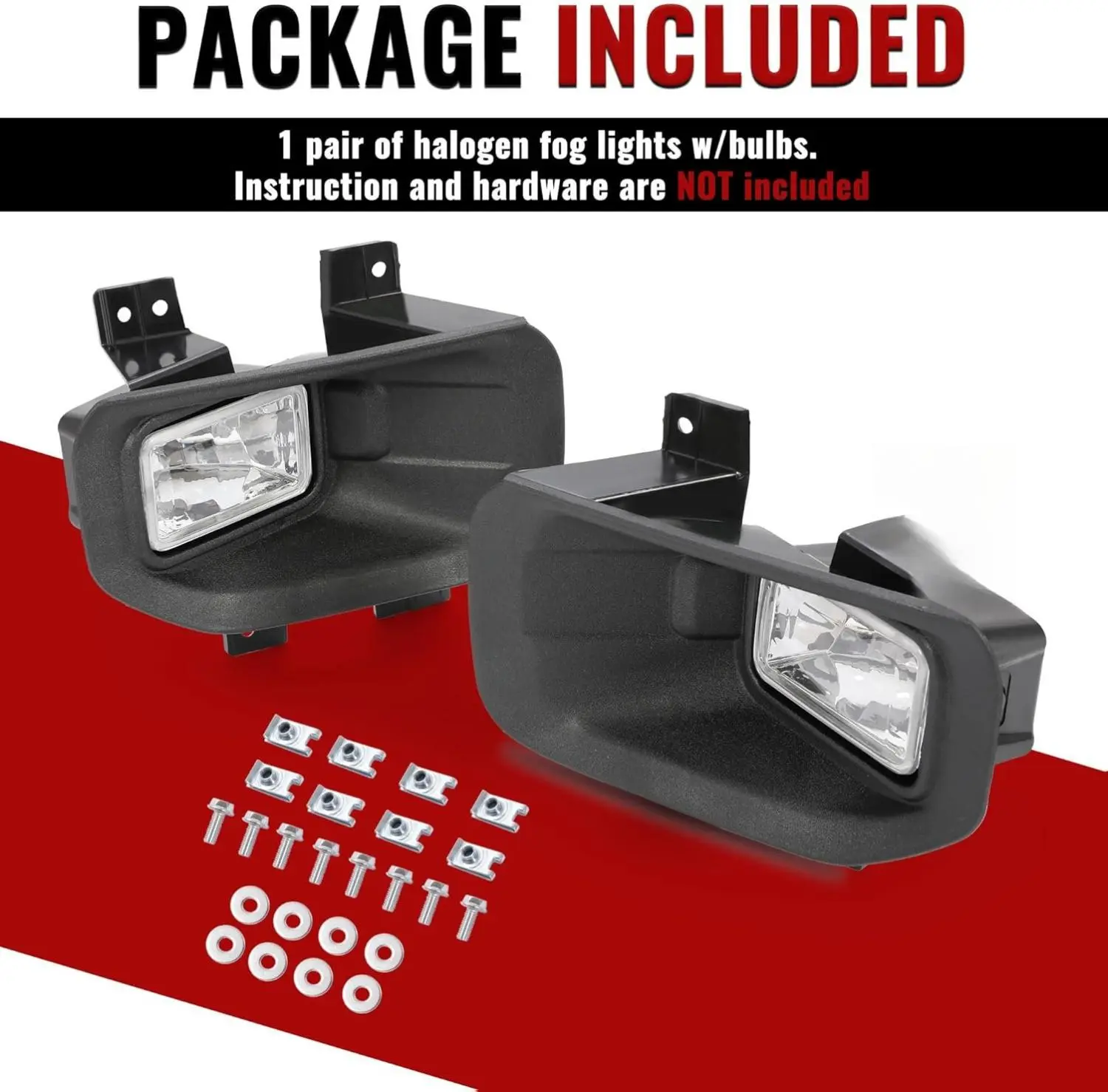 ·PACKAGE CONTENT - Including Driver Side & Passenger Side Fog Lights. Instruction and hardware are not included.