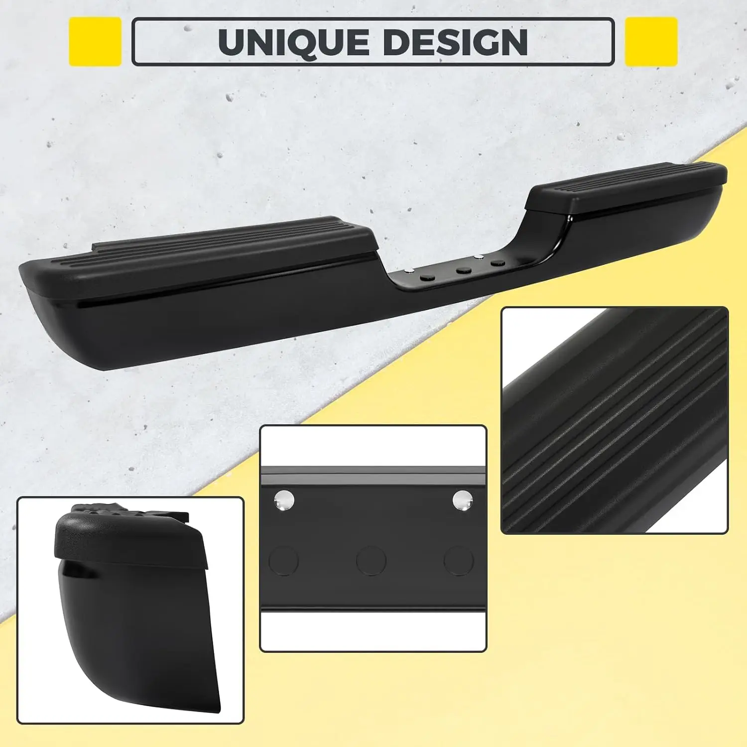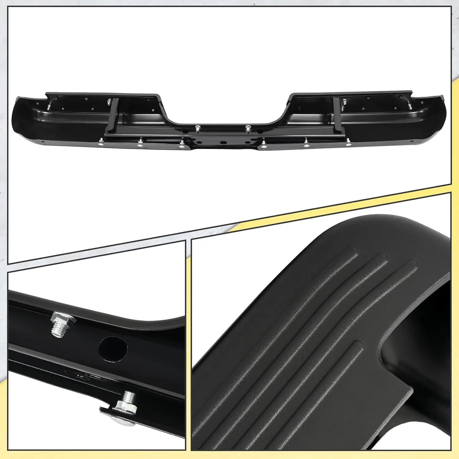 ·Feature - Made of premium steel and plastic, the rear bumper is solid and durable. The surface finish of powder coated effectively extends the use life