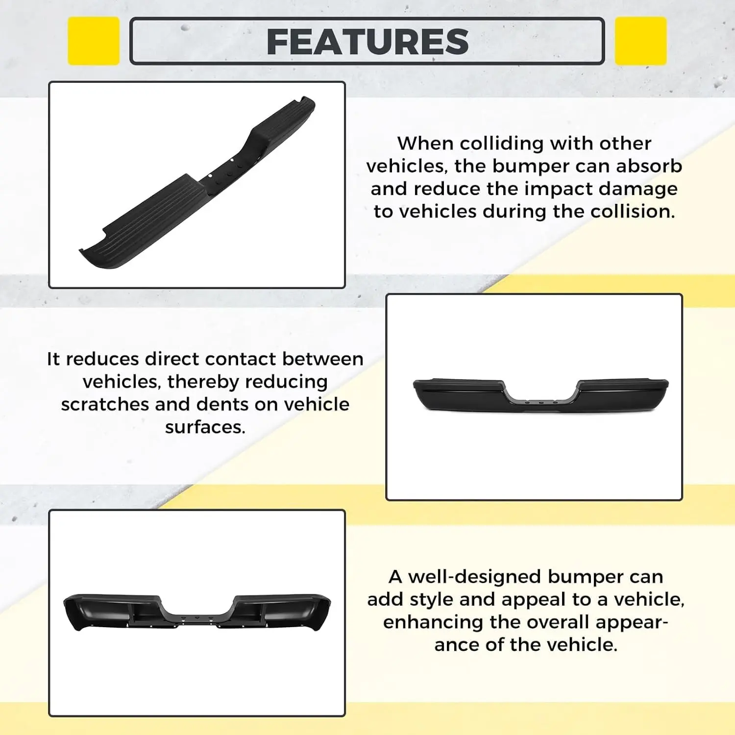 ·Strong Protection - The rear bumper can help absorb the impact, efficiently reducing the damage and protecting your car