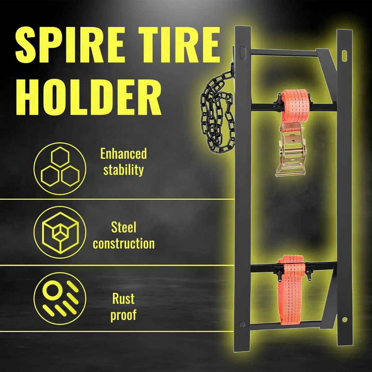 5. Universal Semi-Truck Spare Tire Carrier with Ratchet Strap & Chain – Portable Adjustable Secure Holder Rack NN2191-TK