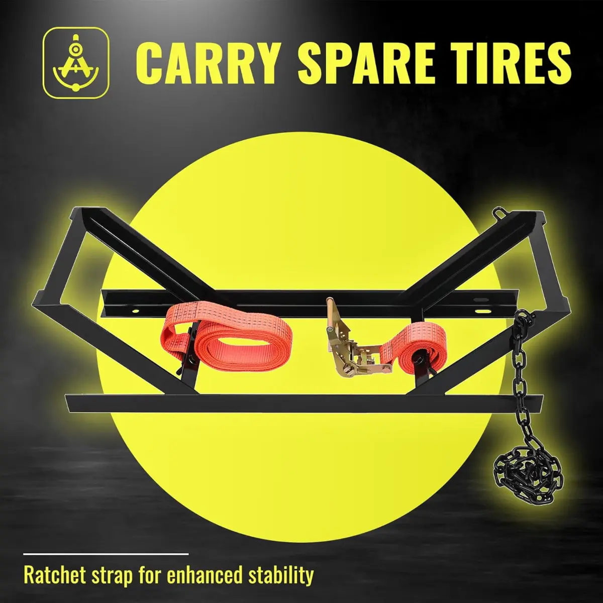 Universal Semi-Truck Spare Tire Carrier with Ratchet Strap & Chain – Portable Adjustable Secure Holder Rack NN2191-TK