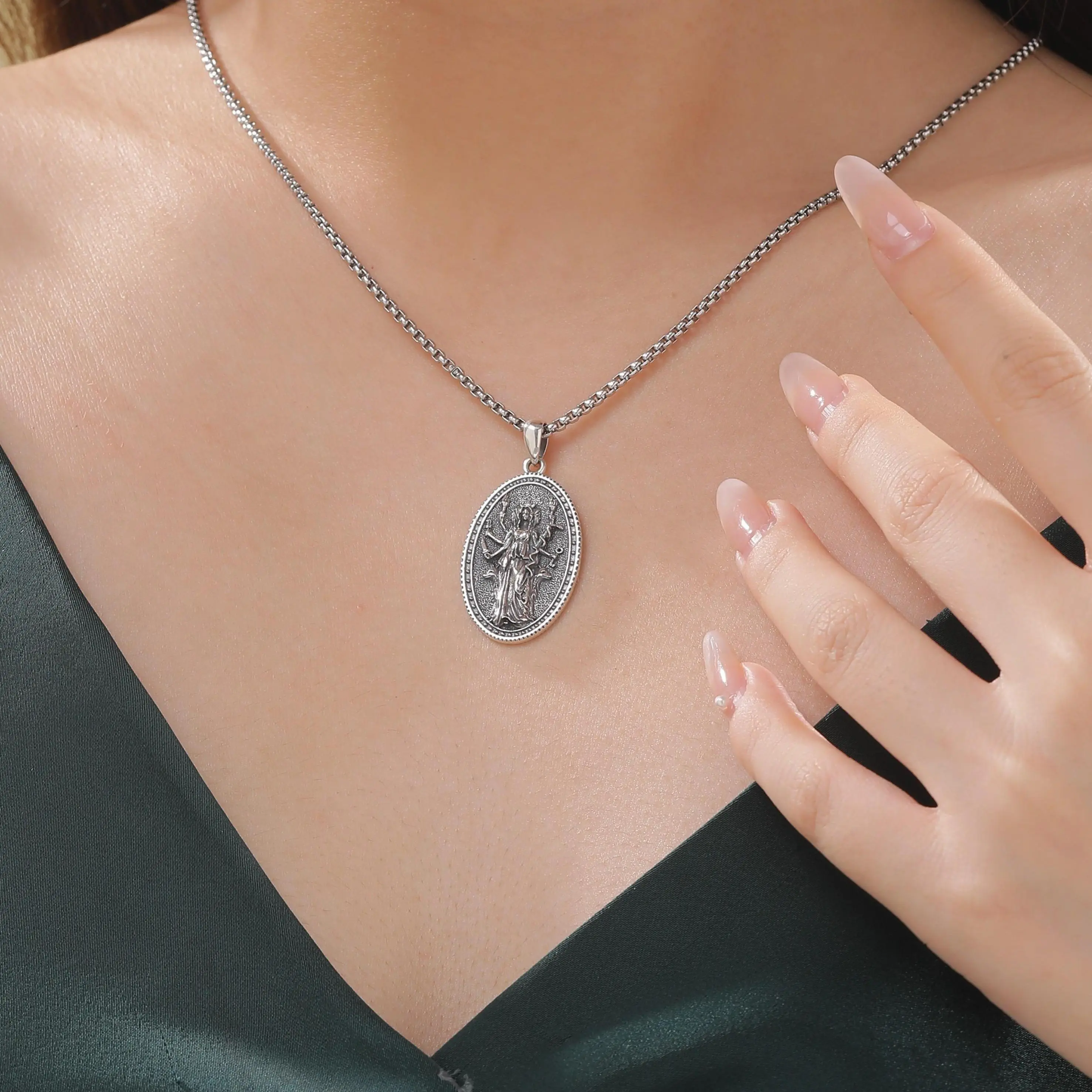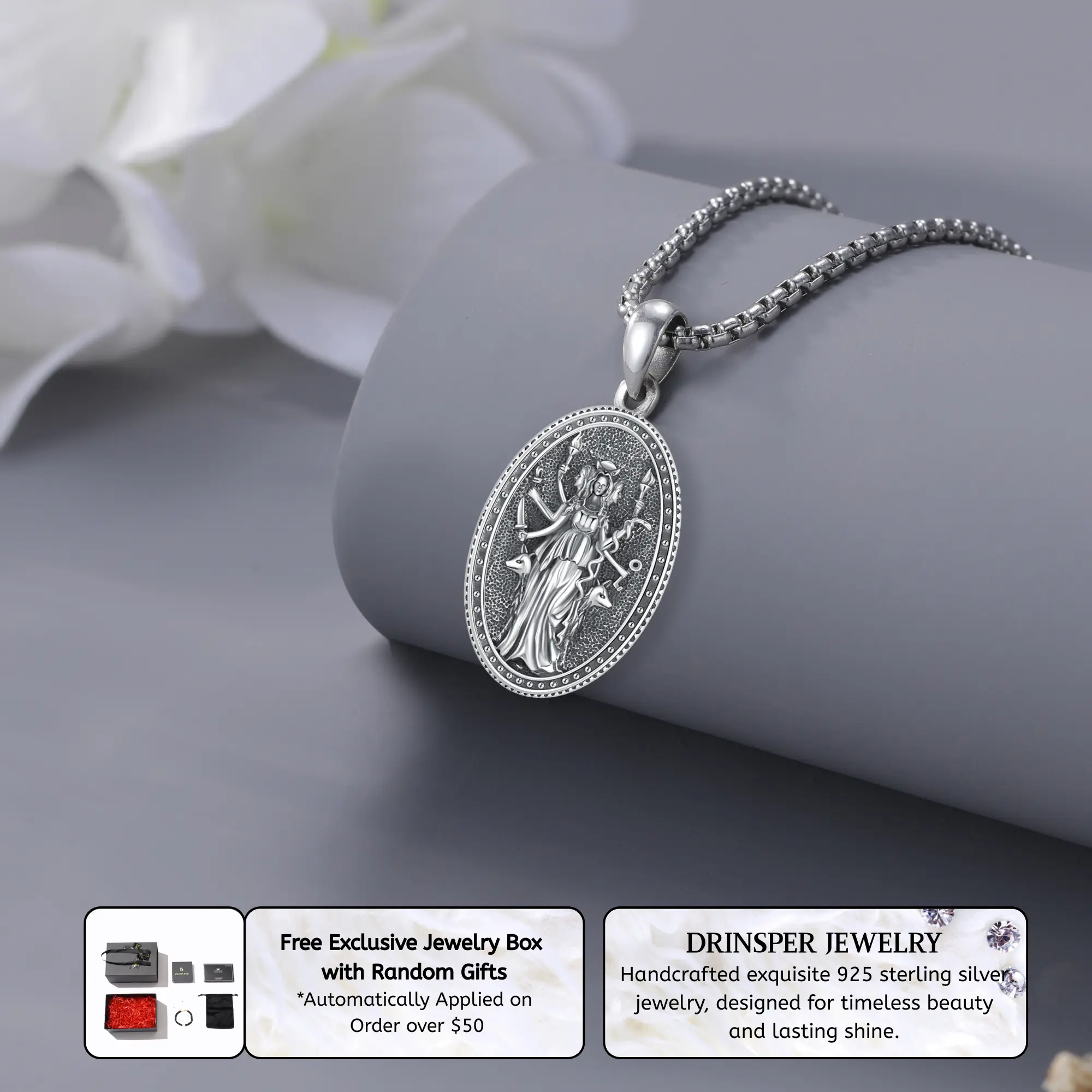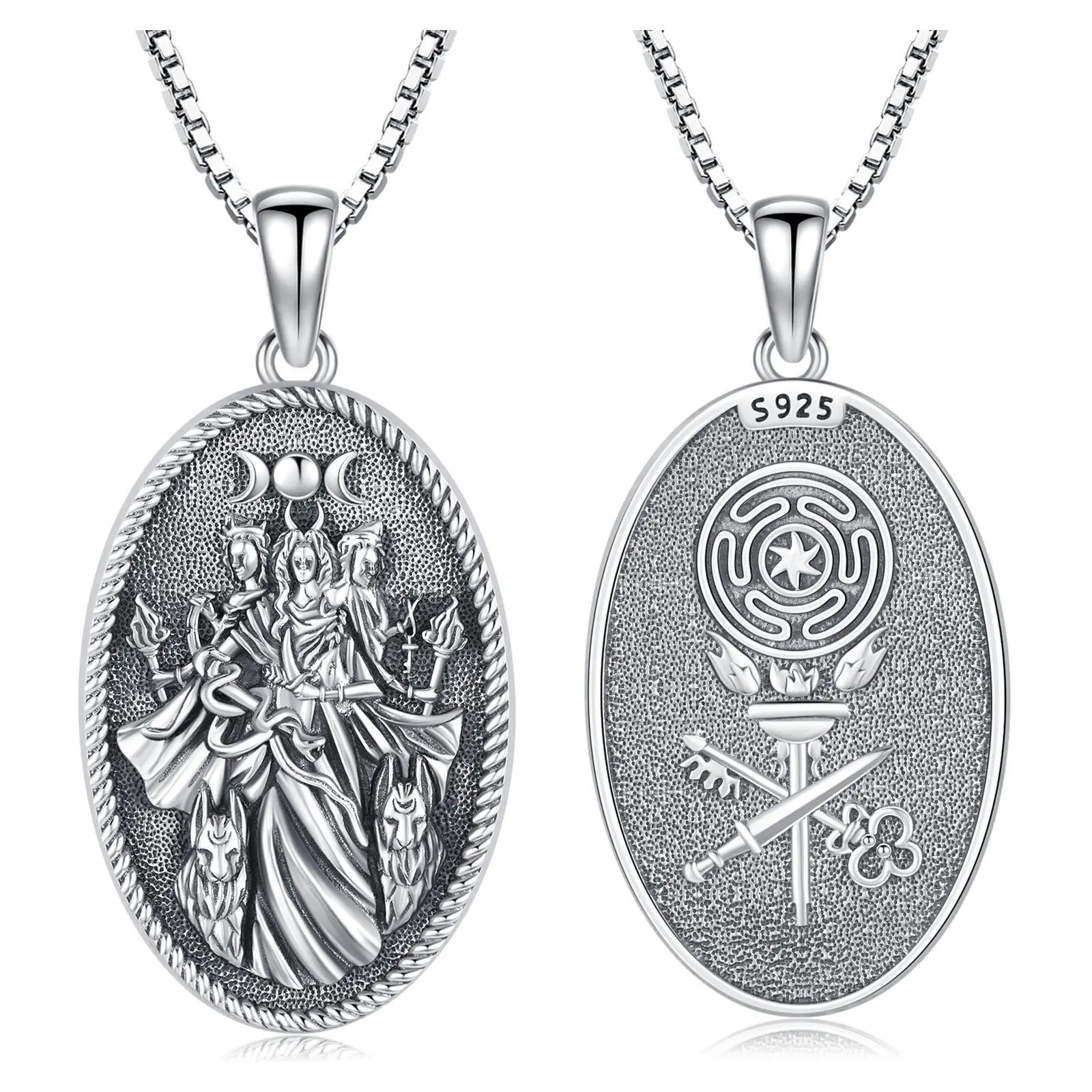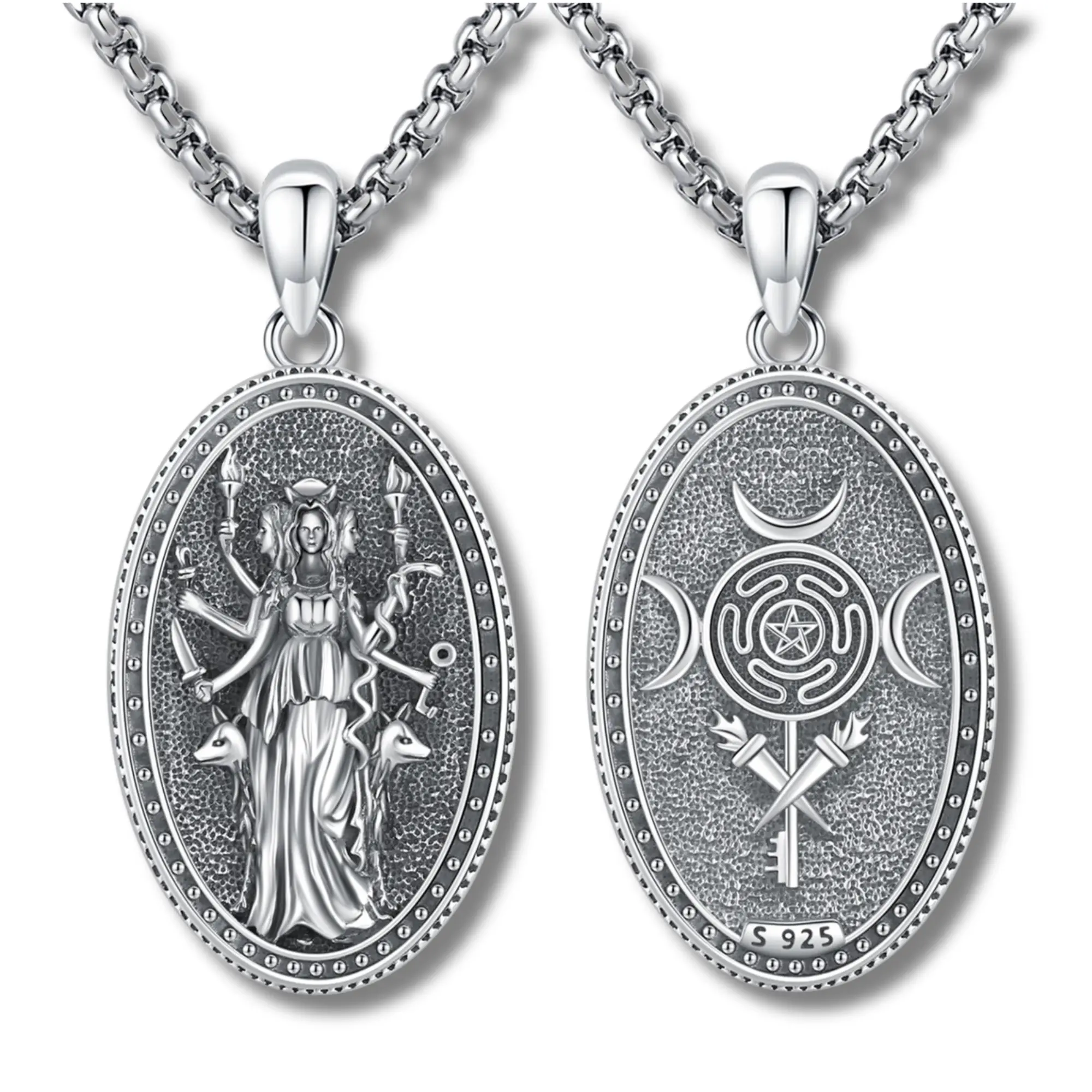 The hecate pendant is made of S925 Sterling Silver, stainless steel chain, lead-free, nickel-free, tarnish-resistant, skin-friendly, long term wear.