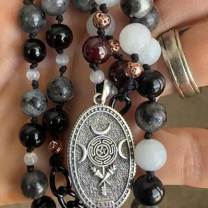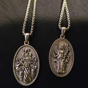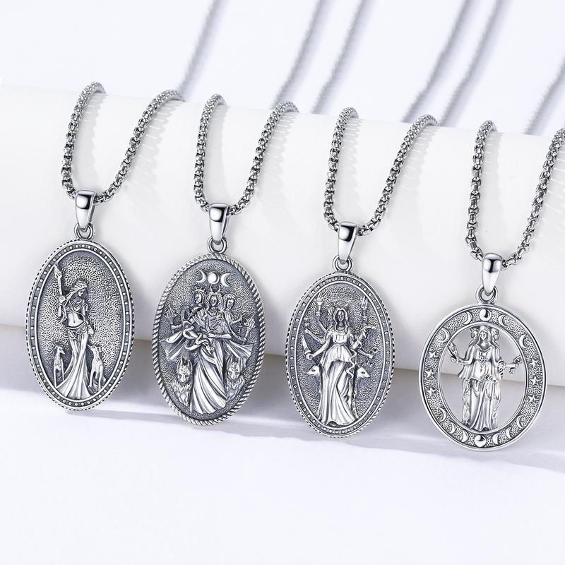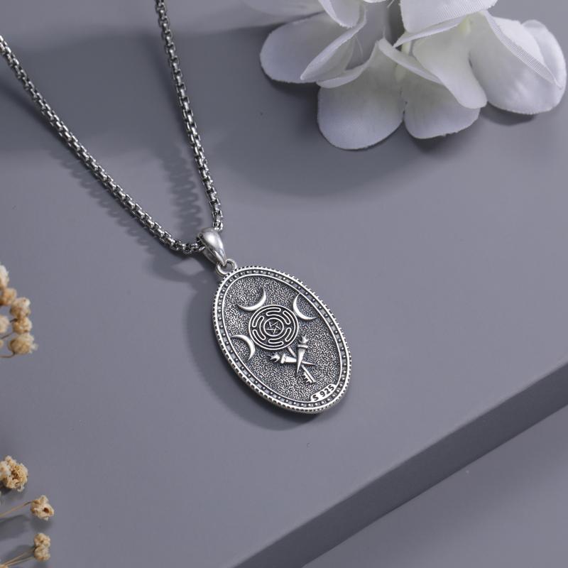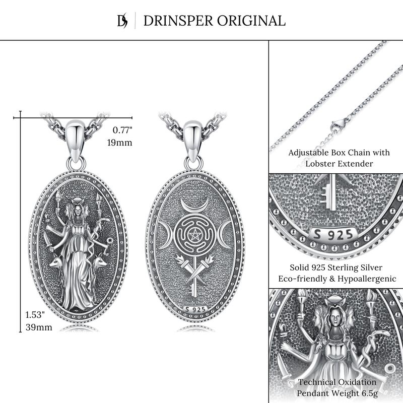 DRINSPER Hecate Triple Goddess Necklace | Pagan & Wiccan Jewelry for Women & Men | 925 Sterling Silver Pendant for Protection and Empowerment