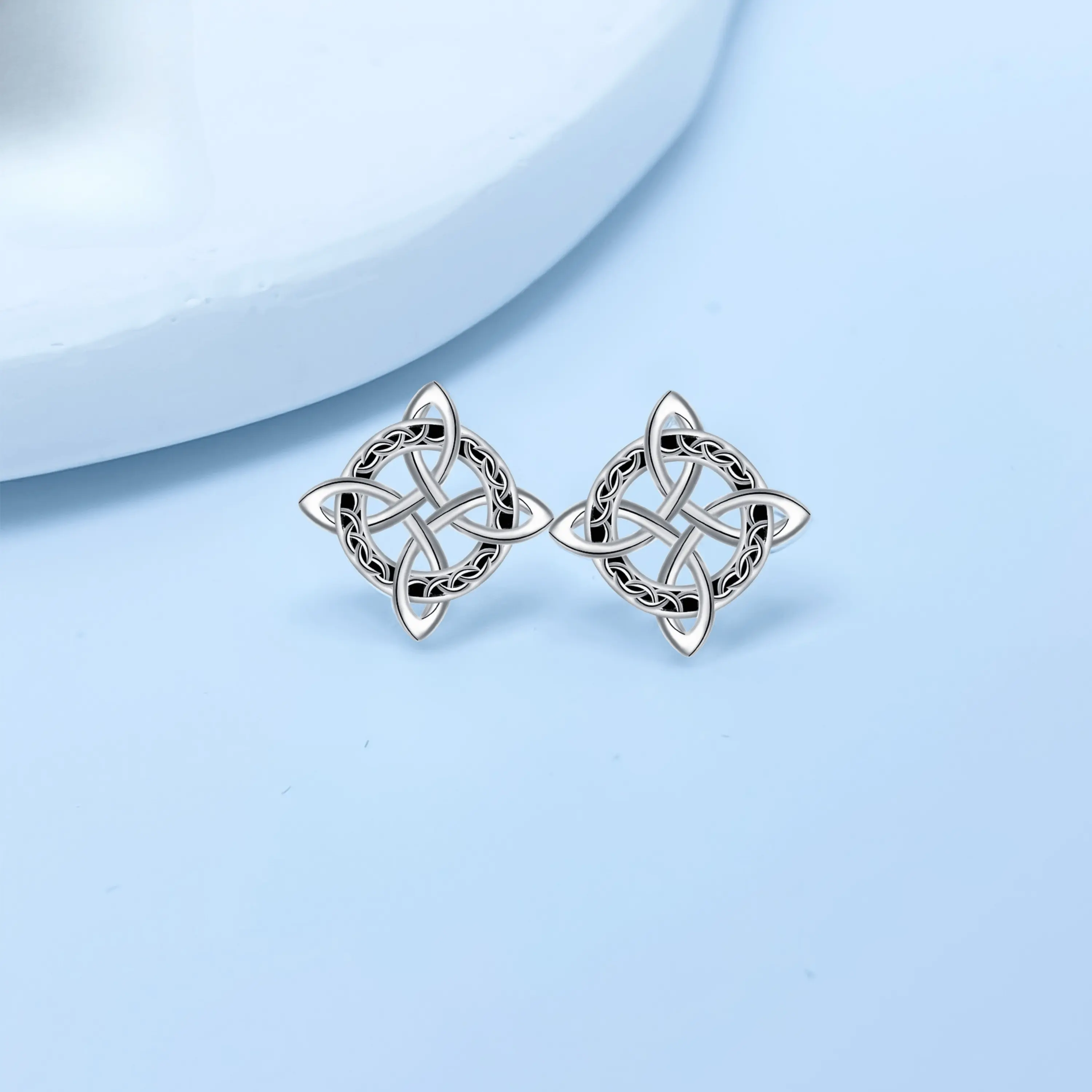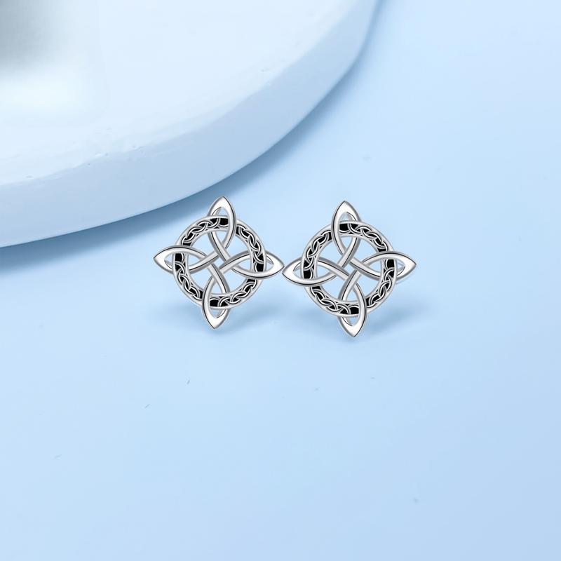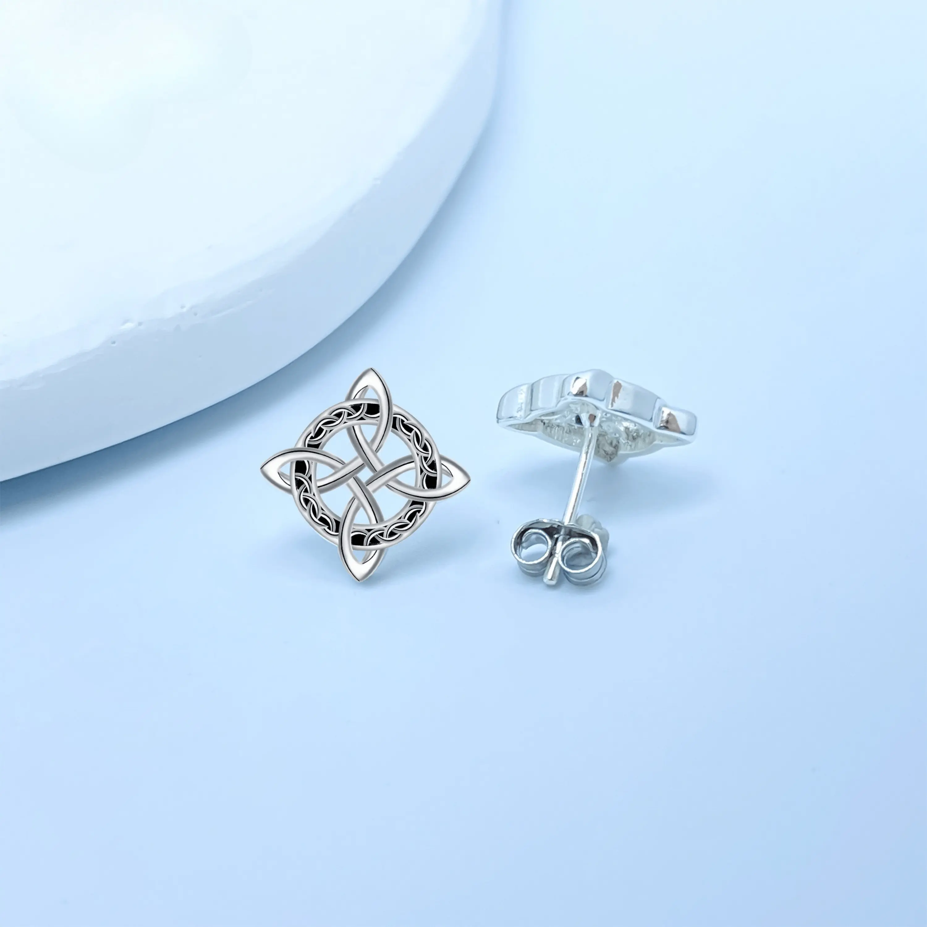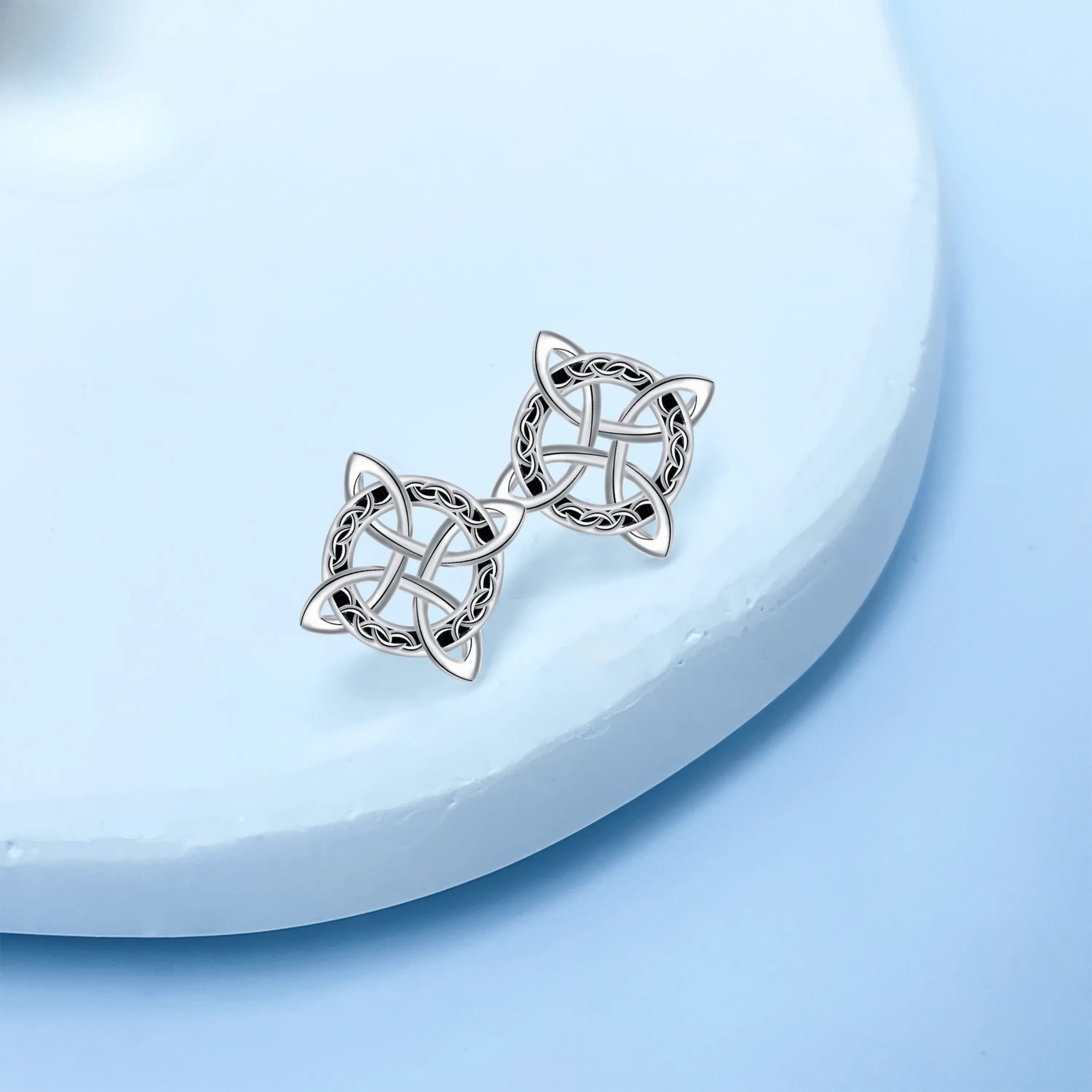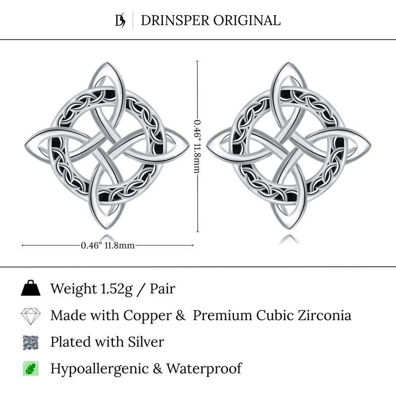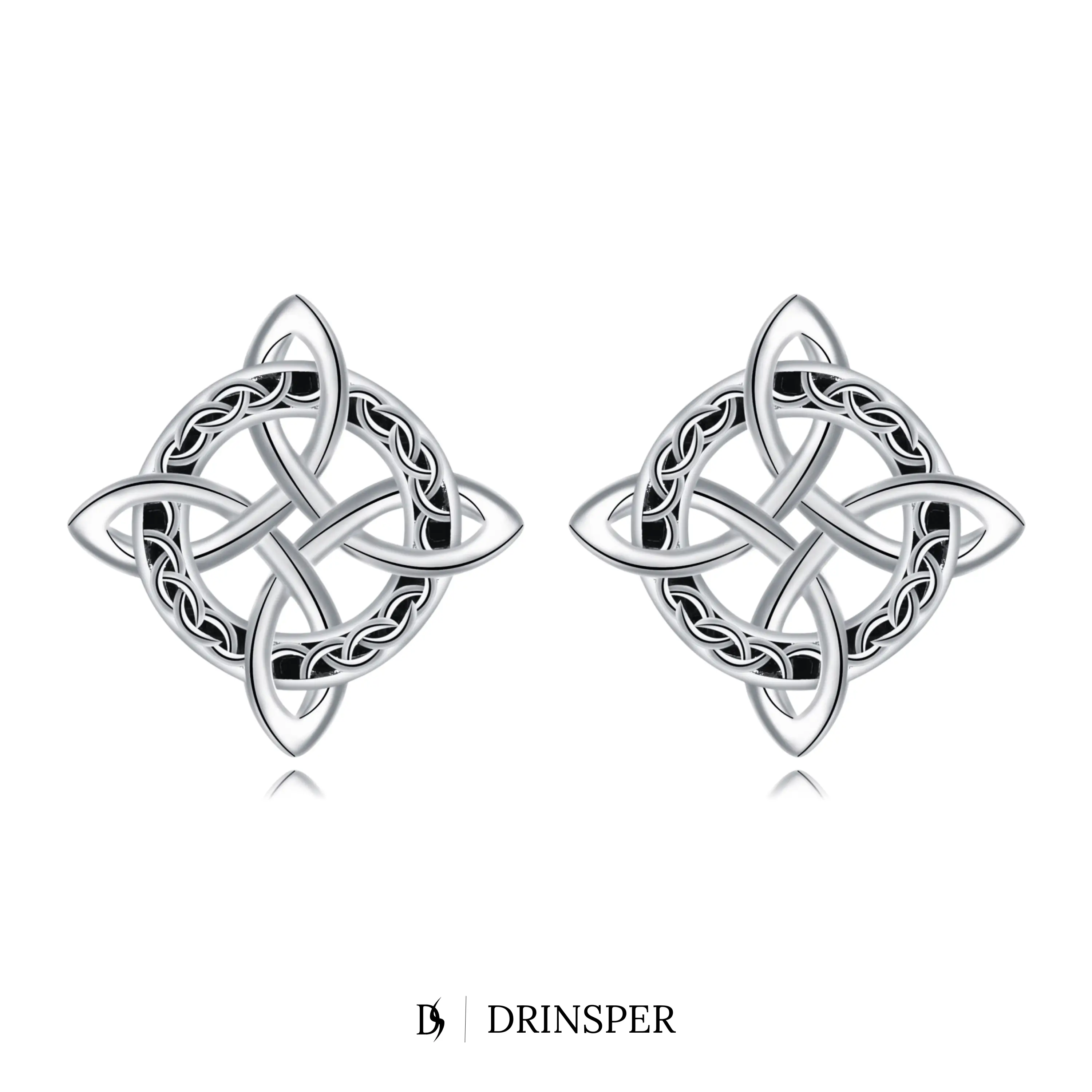DRINSPER Hecate Witches Knot Celtic | For Women & Wiccan/Pagan | Stud Earrings | Goddess Jewelry Amulet of Protection, Silver-Plated Copper with CZ Detail