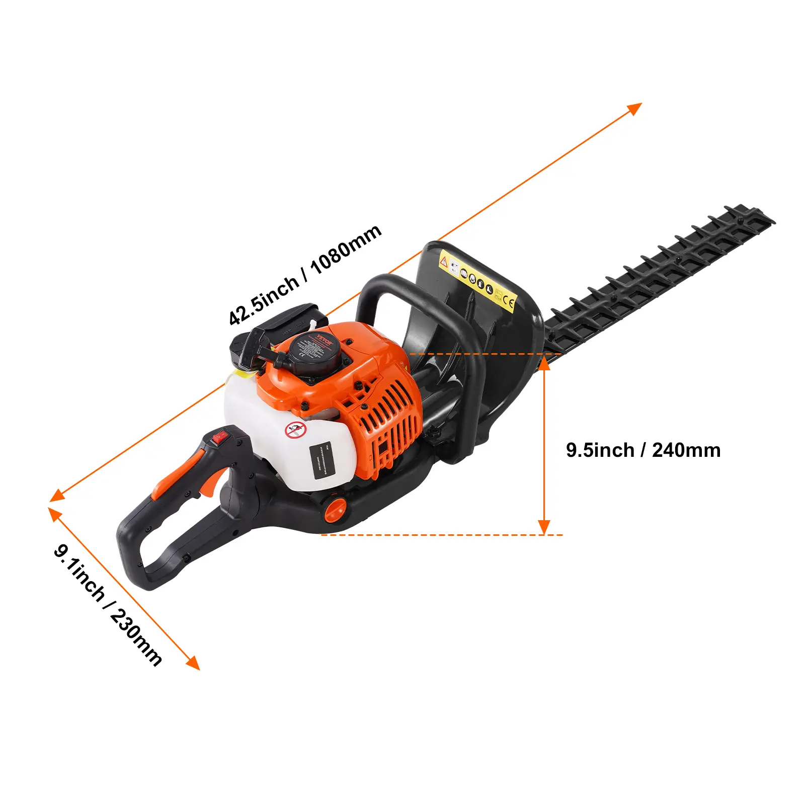 • Efficient Trimming: Equipped with a 26CC 2-stroke engine and 8500rpm speed, the gas hedge trimmer offers powerful performance. The 6500rpm blade speed ensures sharp, efficient trimming of branches, shrubs, tea gardens, and green belts.