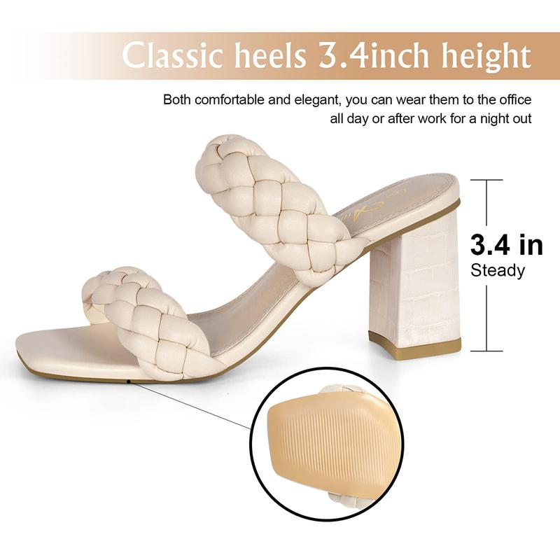 Athlefit Women's Braided Heeled Sandals Strappy Square Open Toe Heels Backless Mules Slip On Block Heels Footwear Walking Shoes Girl Summer